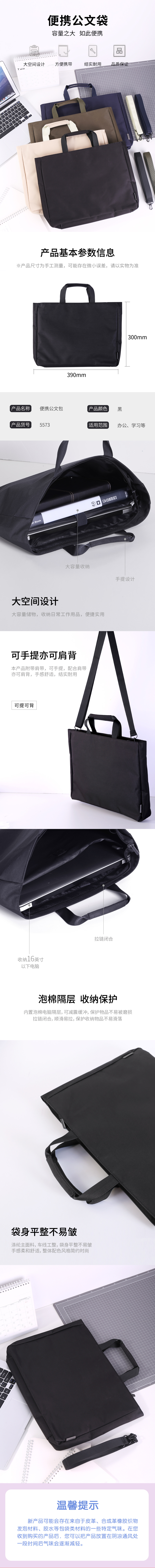商品标题:得力5573手提拉链袋390*300mm(黑)(单位:个)