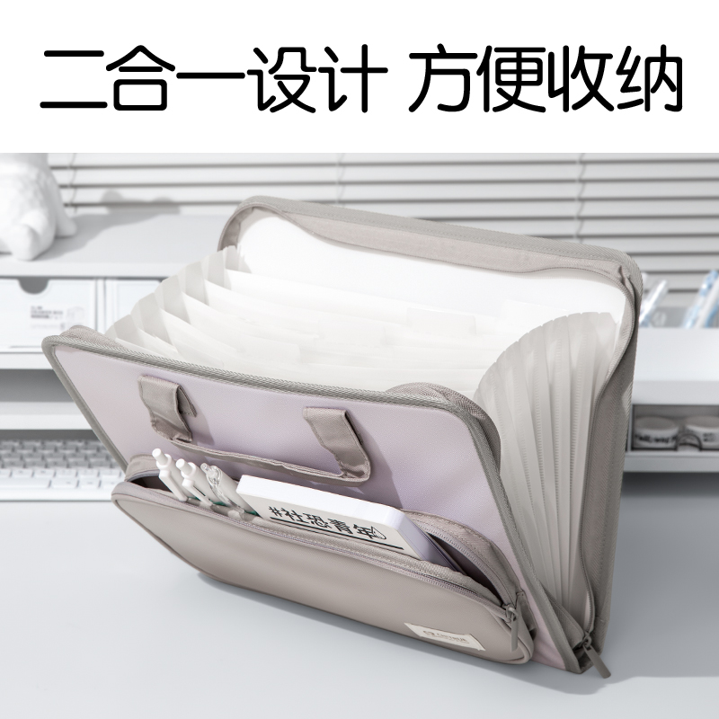 得力PM339趣存系列布质7格横式风琴包(灰)(个)