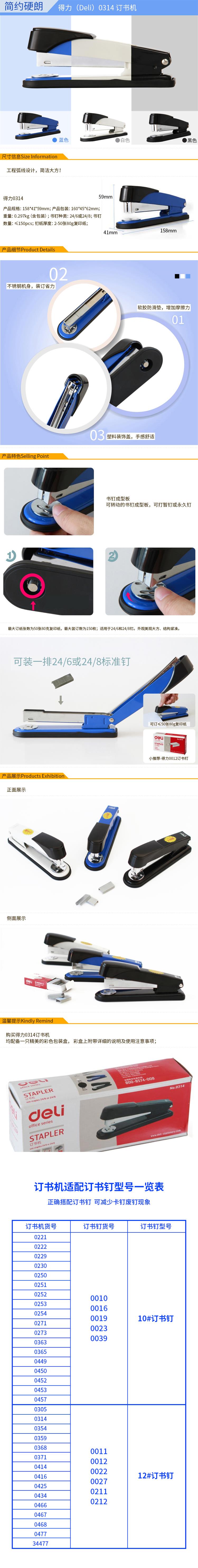 得力0314订书机50页可装订2-50张80G复印纸(黑)(单位:台)