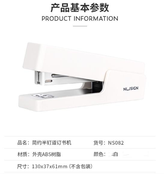 商品标题:得力NS082订书机(白)(1台订书机/彩盒)