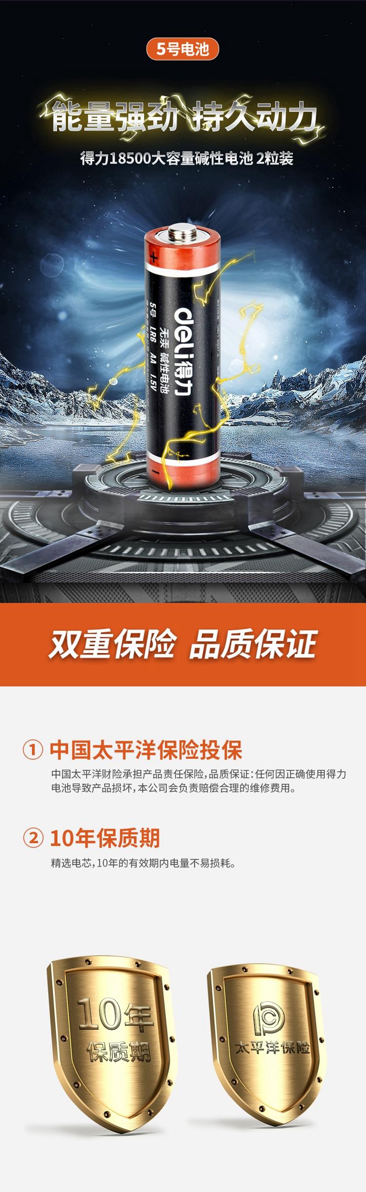 商品标题:得力18500 5号碱性电池 2粒/卡(黑)(卡)