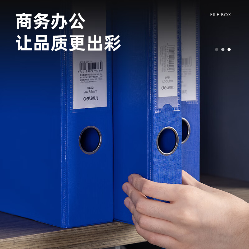 商品标题:得力PA01包纸板档案盒-背宽35MM(蓝)(个)