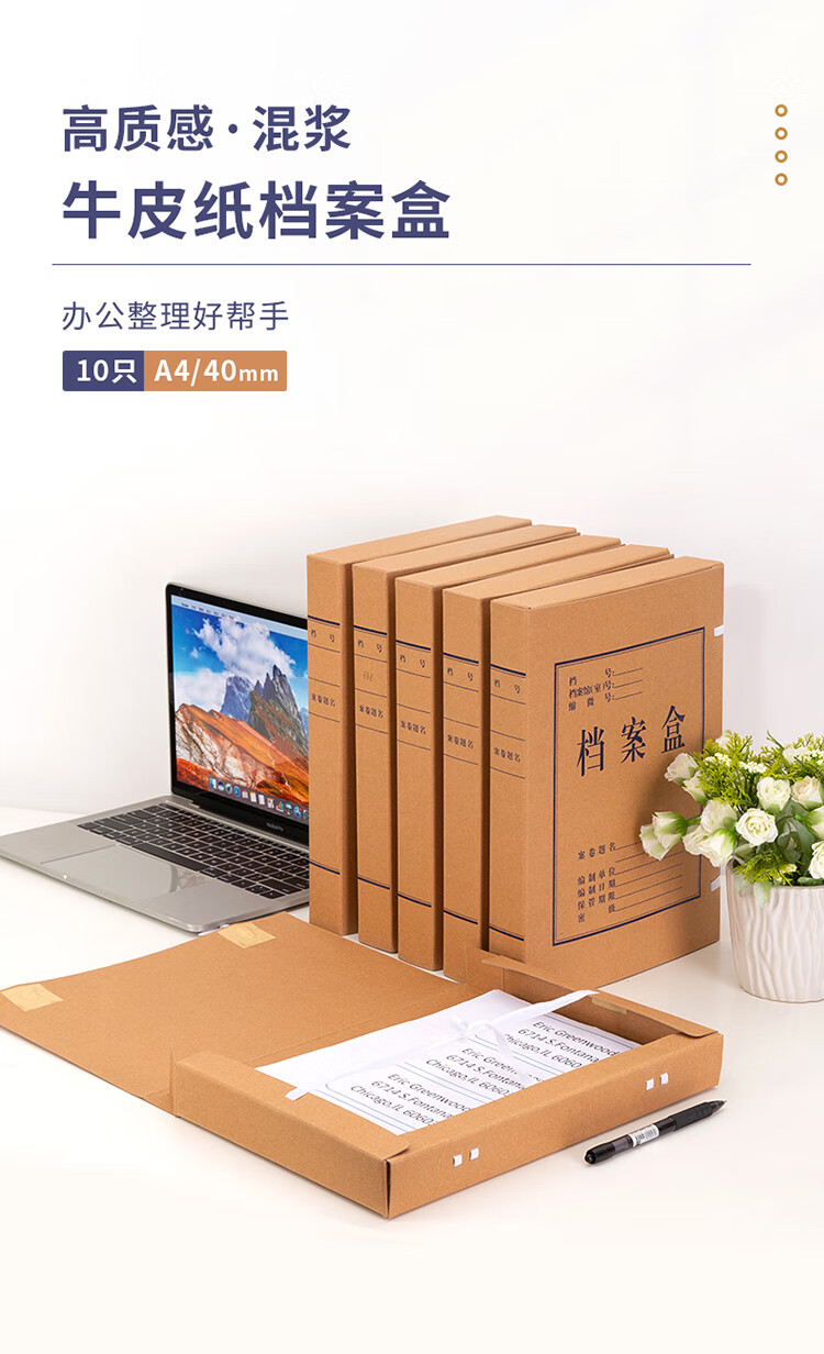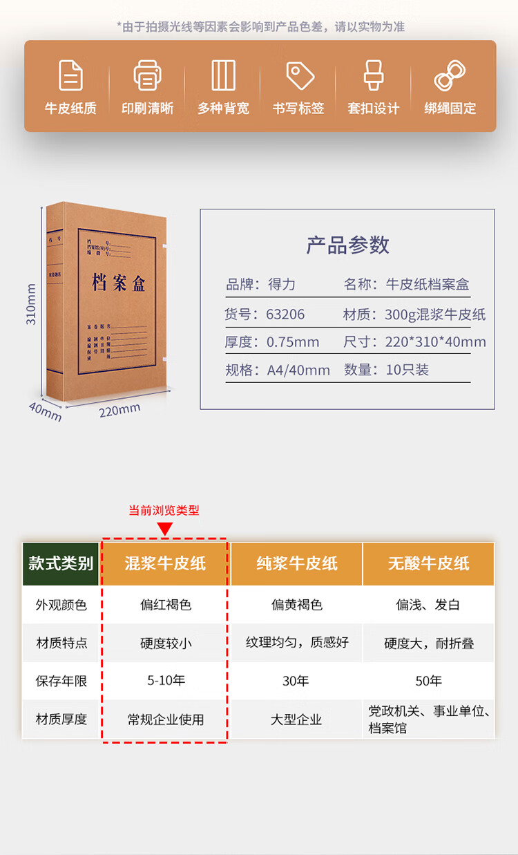 商品标题:得力63206-40mm牛皮纸档案盒(黄)(包)