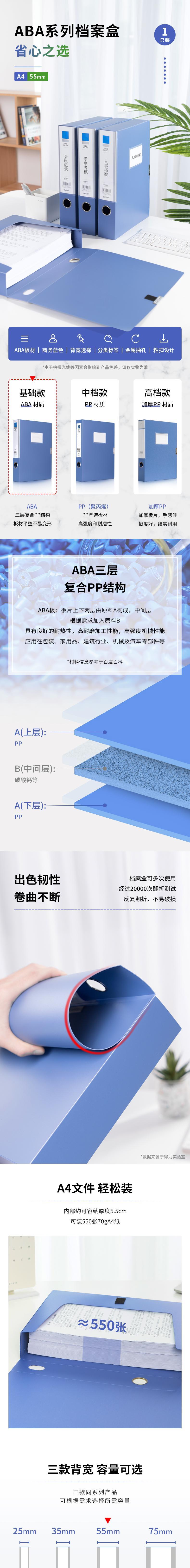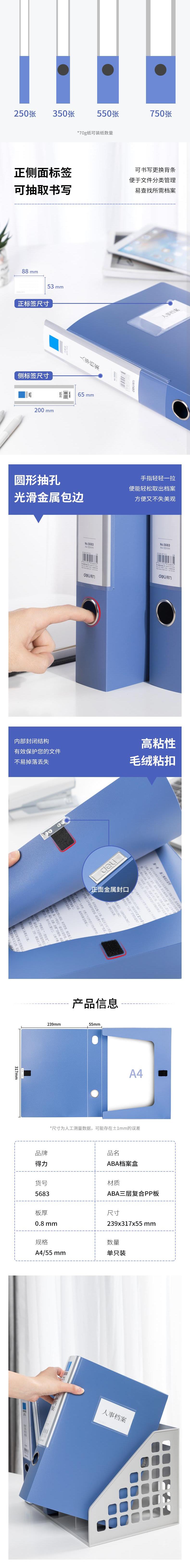 商品标题:得力 PP档案盒 5683 239*317*55mm(单位:只)蓝色粘扣