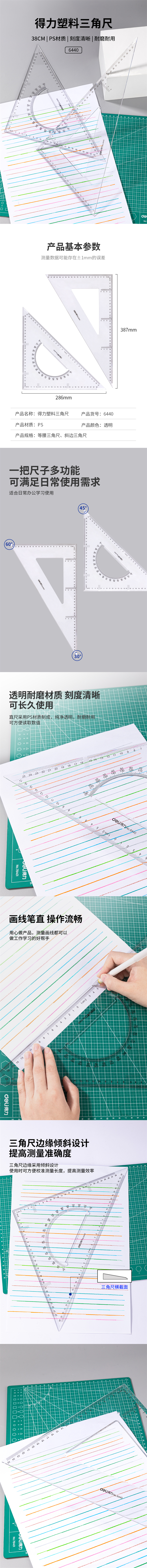 商品标题:得力 6440 三角尺尺子直尺 40cm (套)