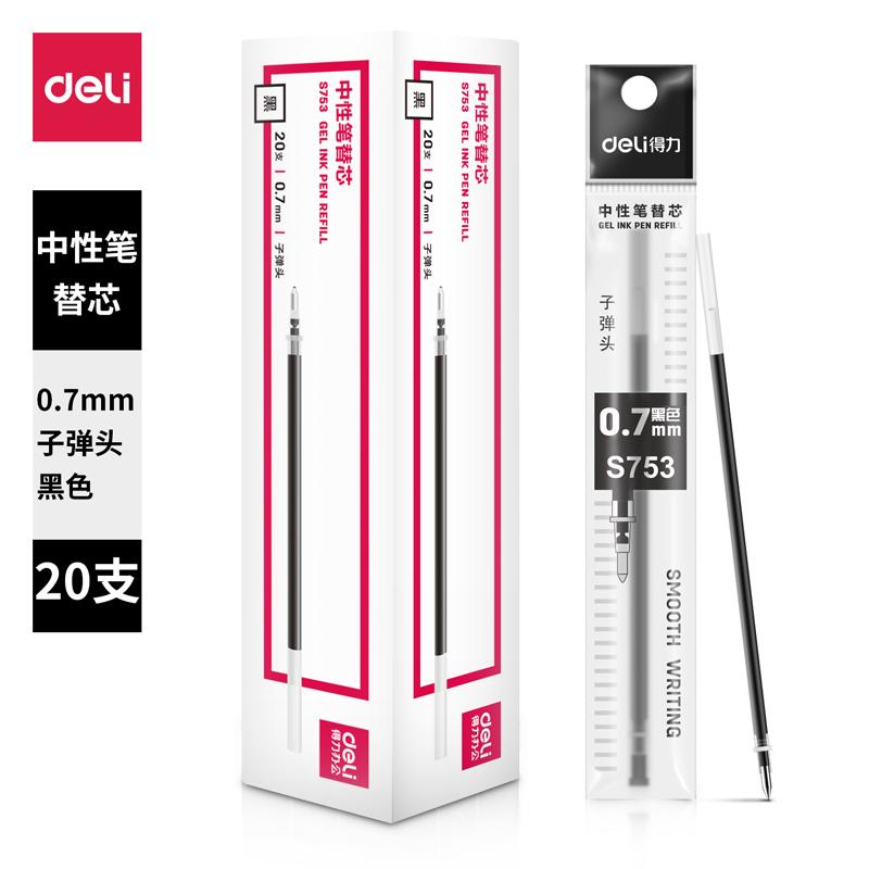 得力(DELI)S753 中性笔芯0.7mm子弹头 20支/盒 黑(单位:支)