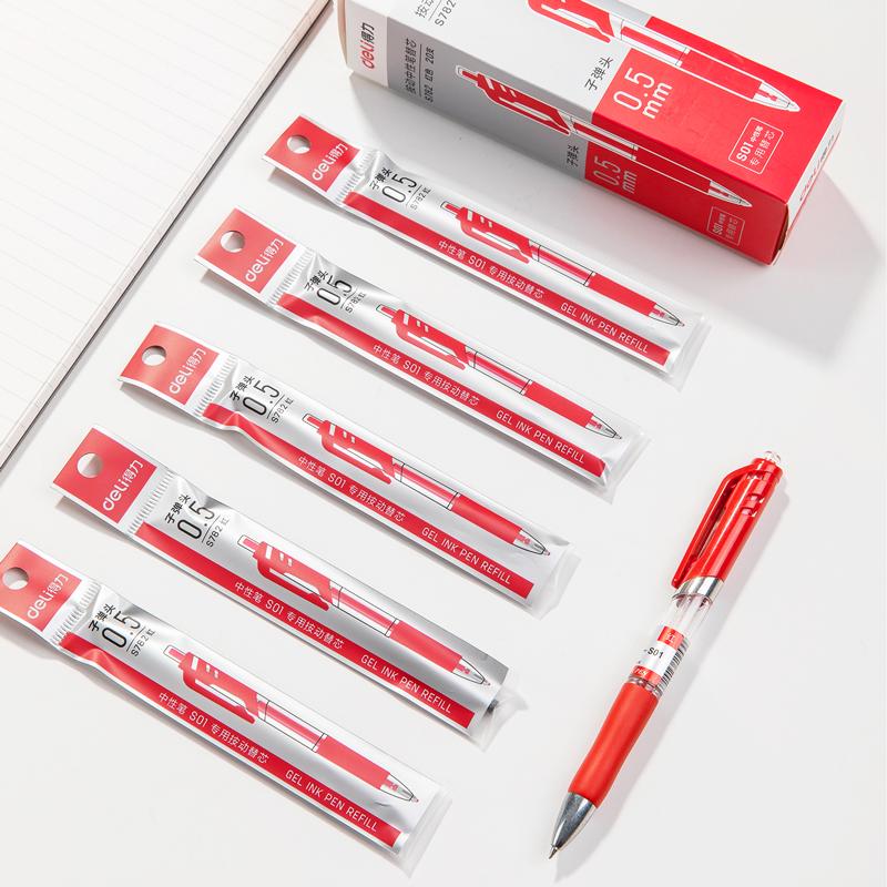 得力(DELI)S782按动中性笔替芯0.5mm子弹头 红(单位:支)