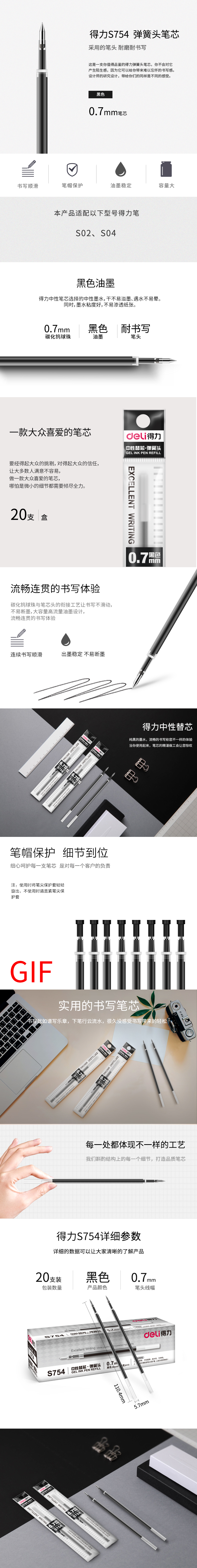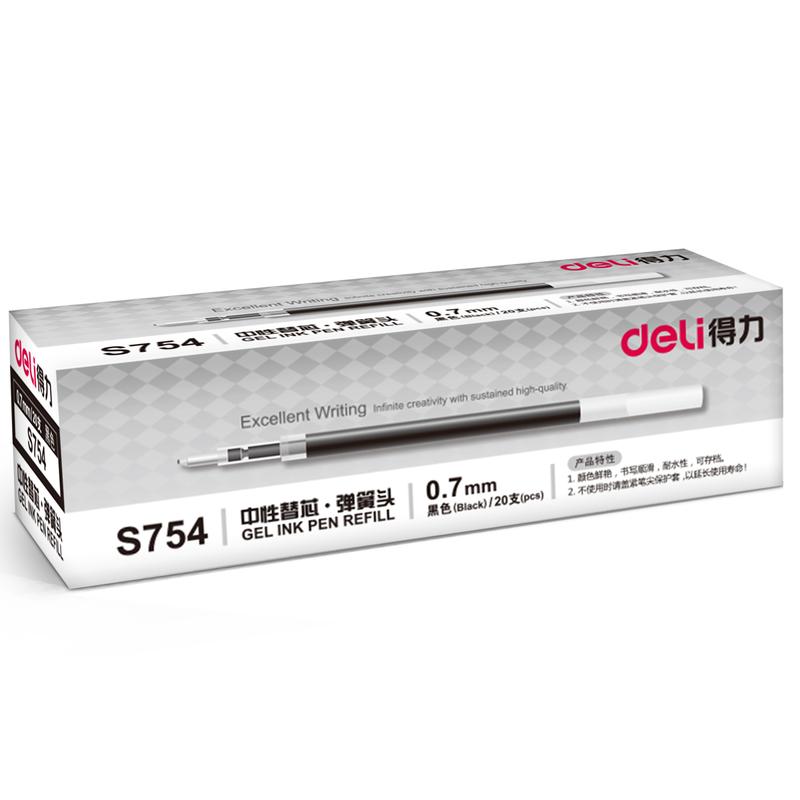 得力 S754 弹簧头中性笔芯水笔芯 0.7mm 20支/盒 (单位:支) 黑色