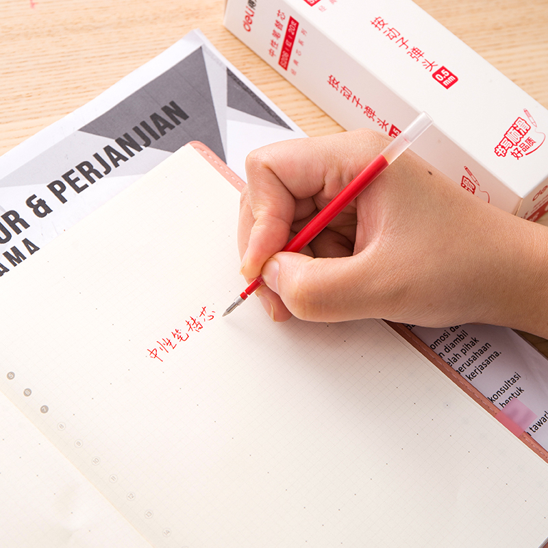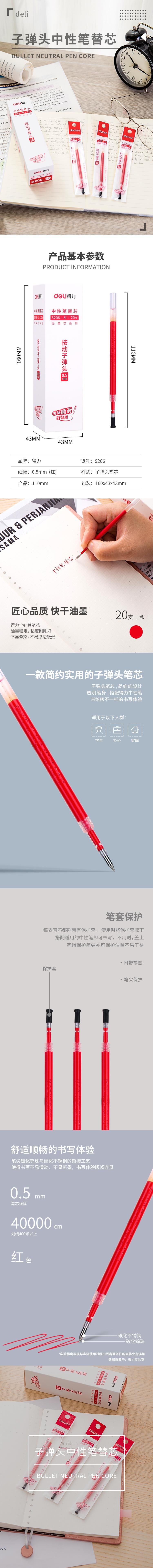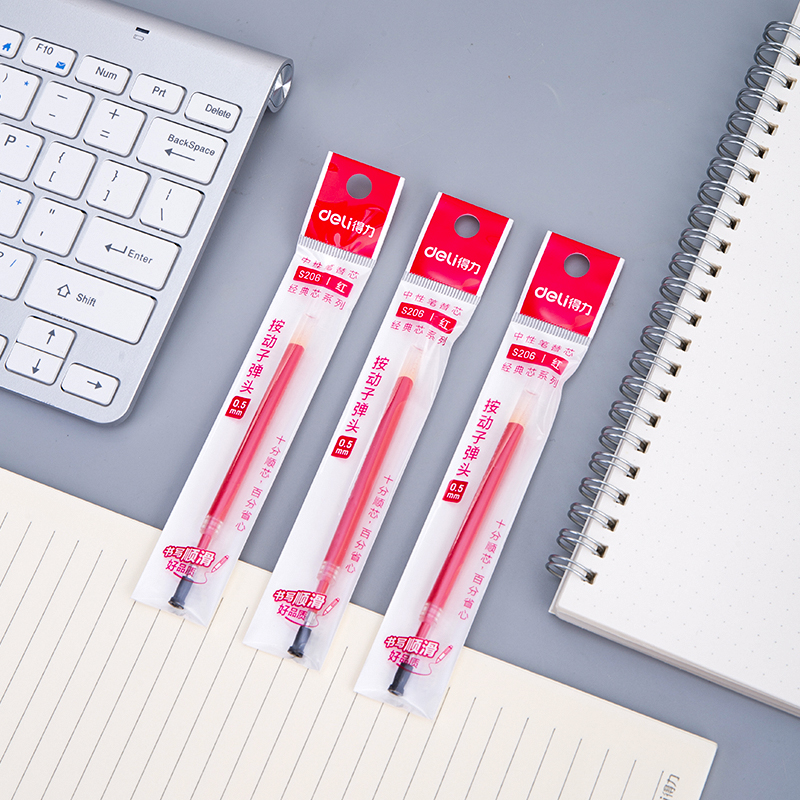得力S206中性笔替芯0.5mm按动子弹头(红)