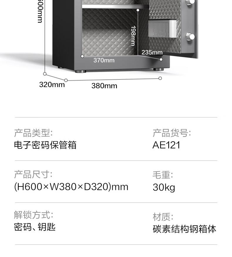 商品标题:得力AE121电子密码保管箱H600(灰色)(台)