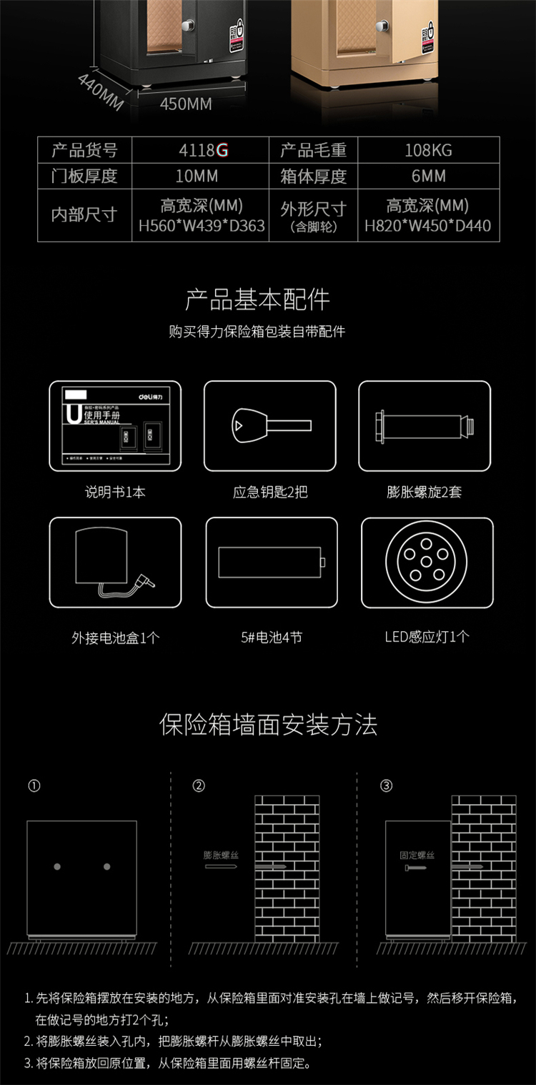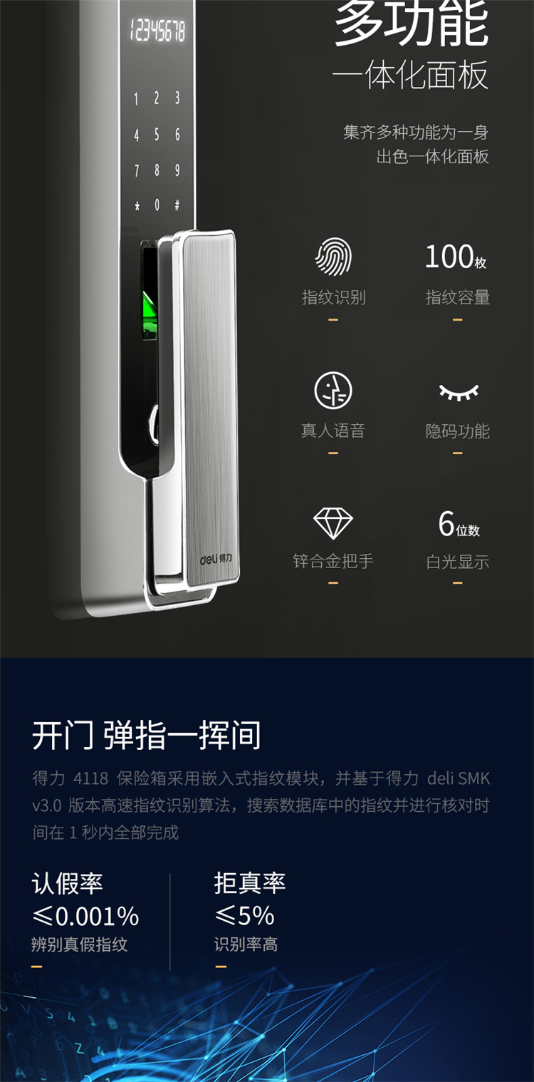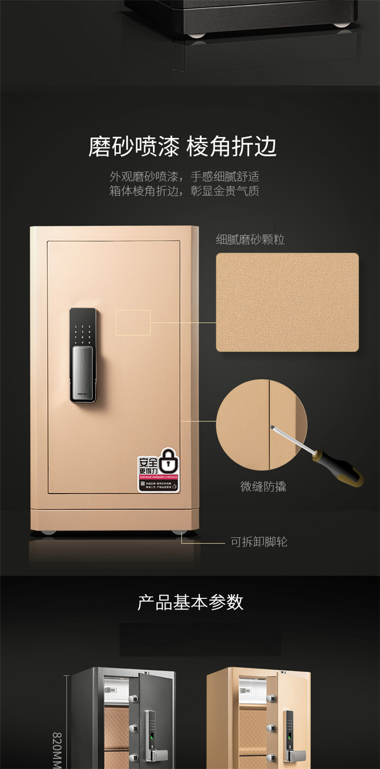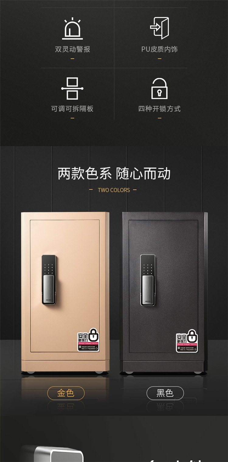 商品标题:得力4118G指纹密码保险柜H810(黑色)(台)