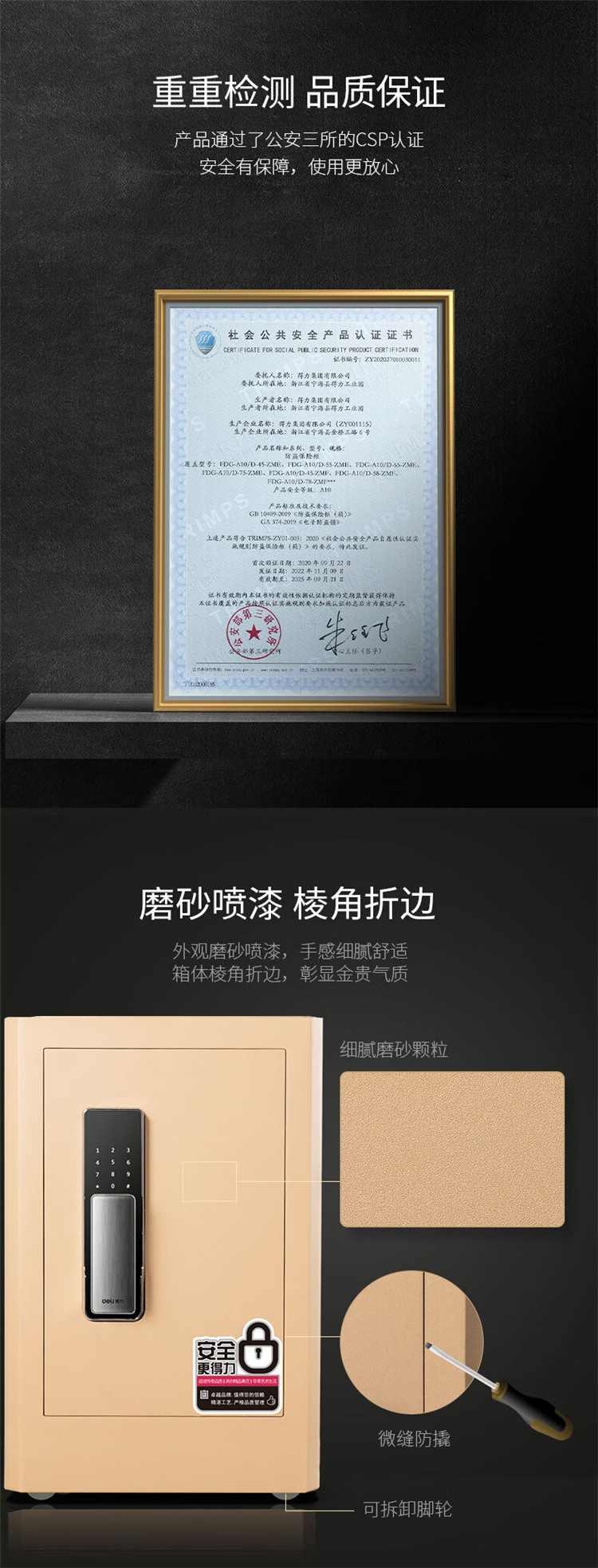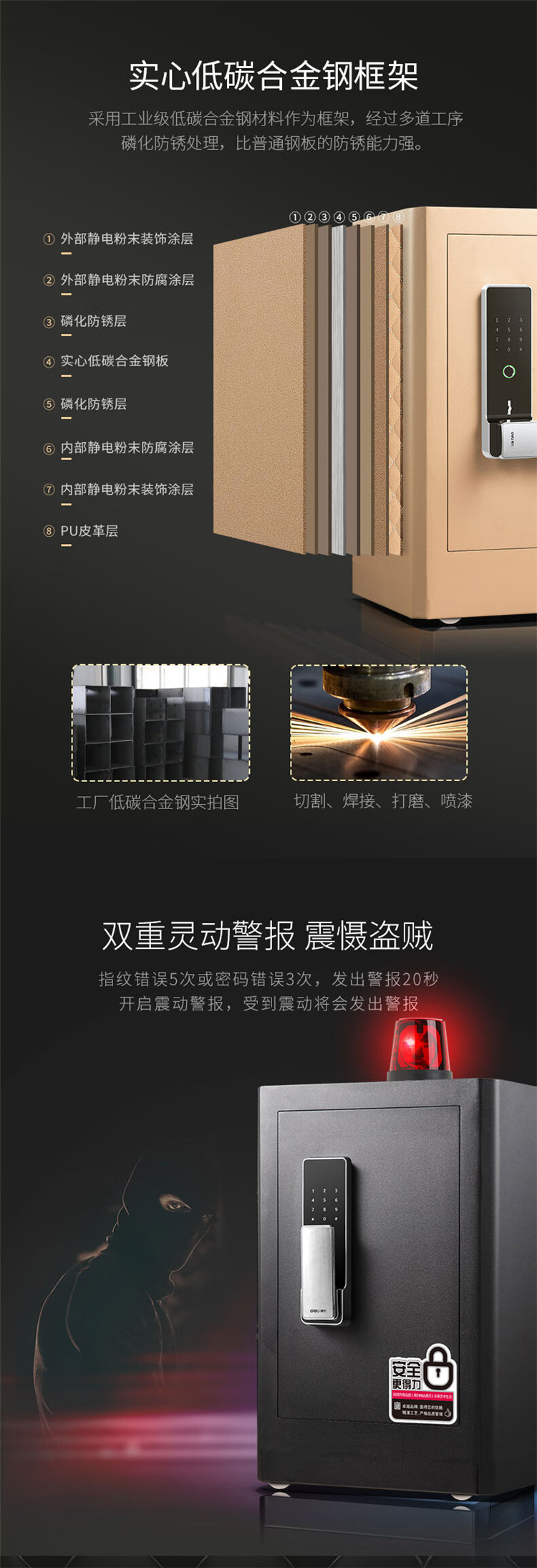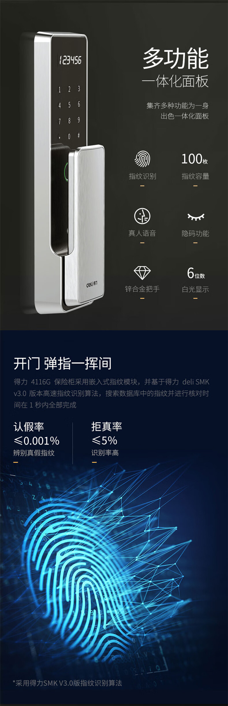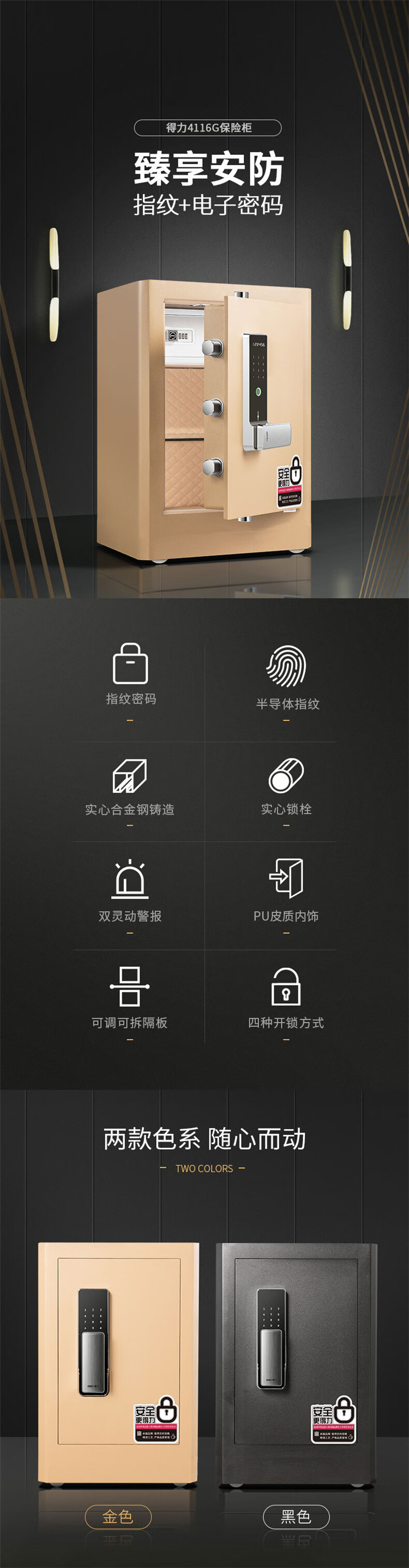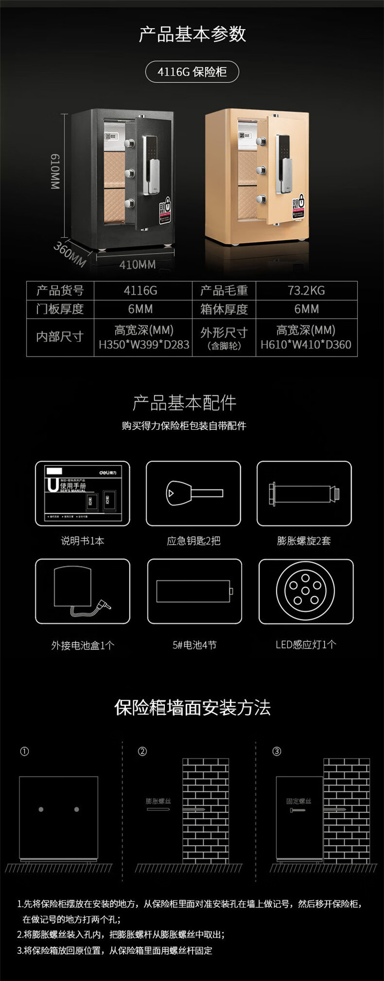 商品标题:得力4116G指纹密码保险柜H610(黑色)(台)