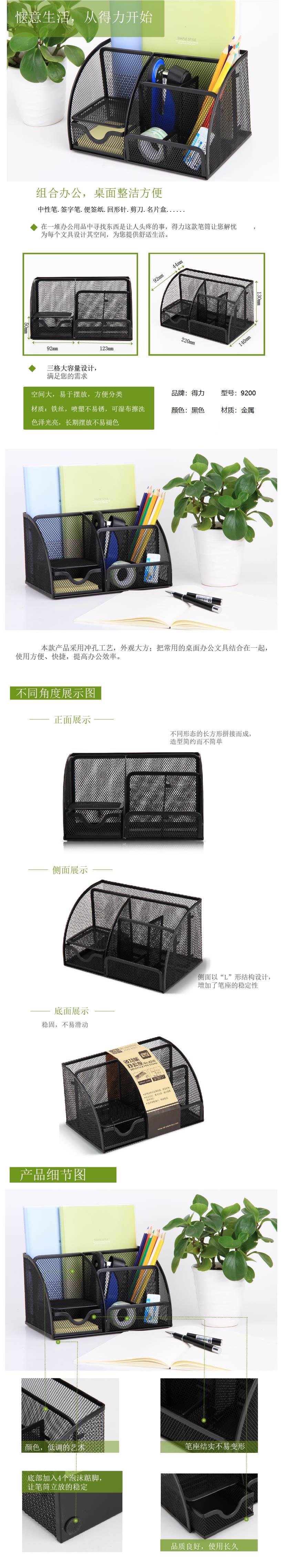 商品标题:得力 9200 组合办公盒笔筒 220x140x130mm (单位:只) 黑