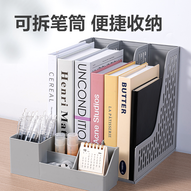 商品标题:得力9843BES三联文件框带笔筒(灰色)(袋)