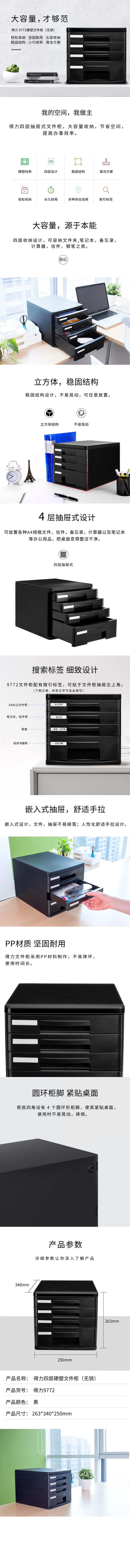 名称:得力9772四层硬塑文件柜(黑)(只)