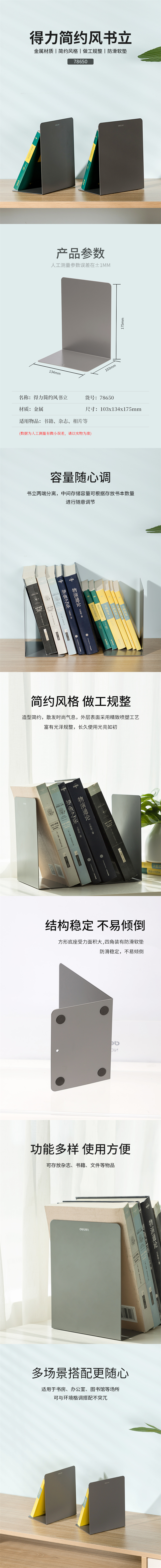 得力78650书立103*134*175mm(深灰)(2片/付)(单位:付)