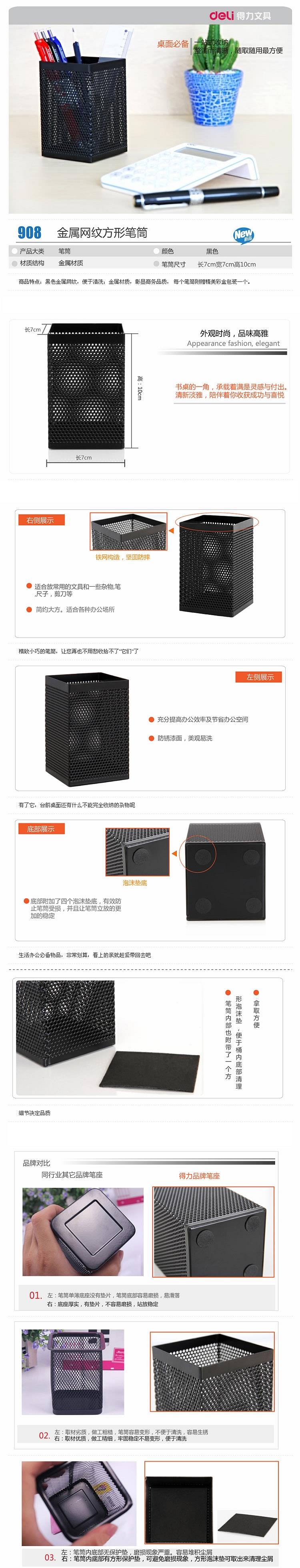 得力 908 笔筒7*7*10cm(单位:只) 黑