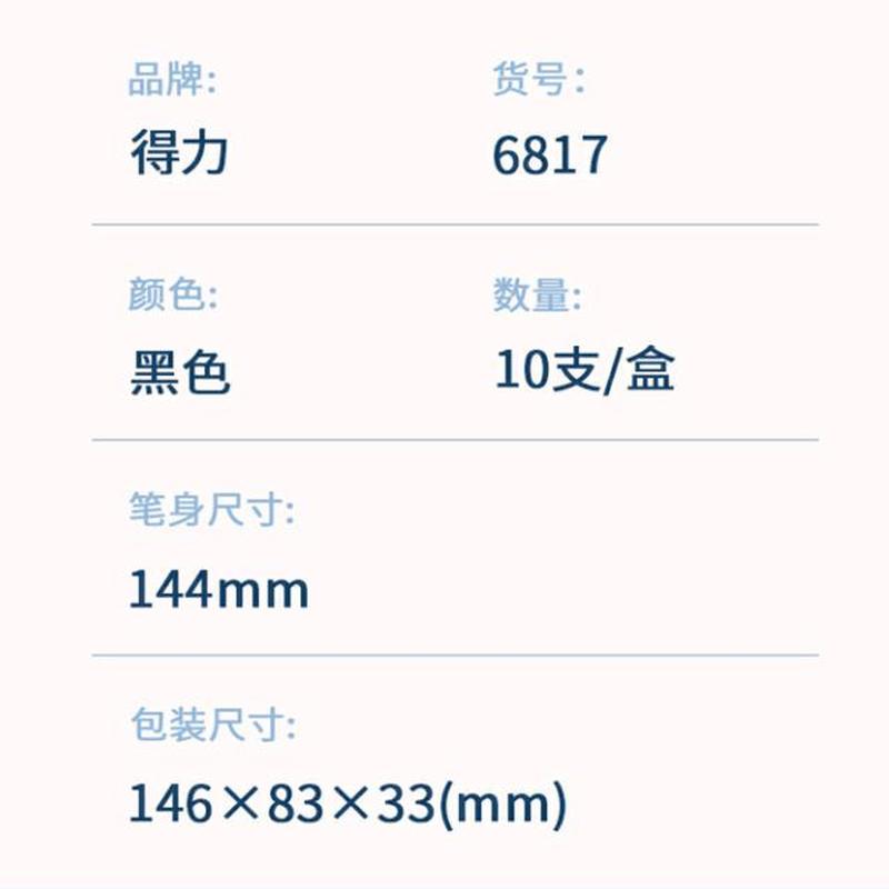 商品标题:得力 6817 白板笔1.8mm 10支/盒(单位:支) 黑