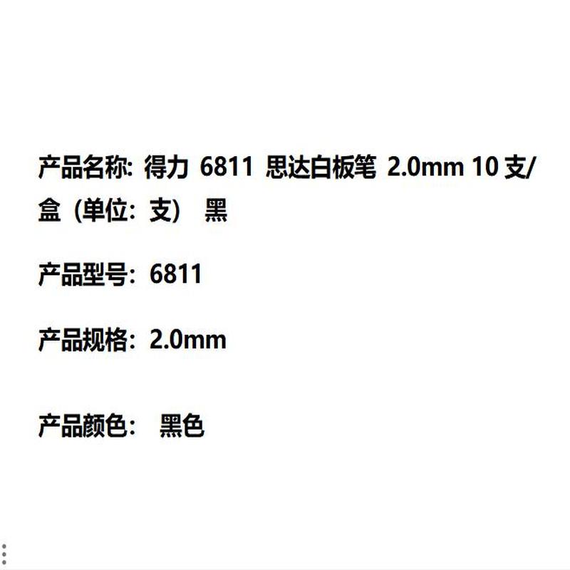 商品标题:得力 6811 思达白板笔 2.0mm 10支/盒(单位:支) 黑