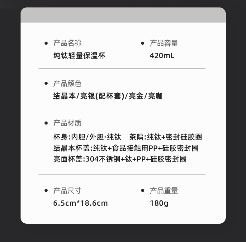特美刻(TOMIC)TW60165Ti纯钛保温杯结晶本420ml(单位:个)