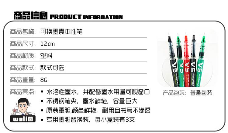 商品标题:百乐 BXC-V5 中性笔 0.5mm12支/盒 (单位:盒) 黑芯