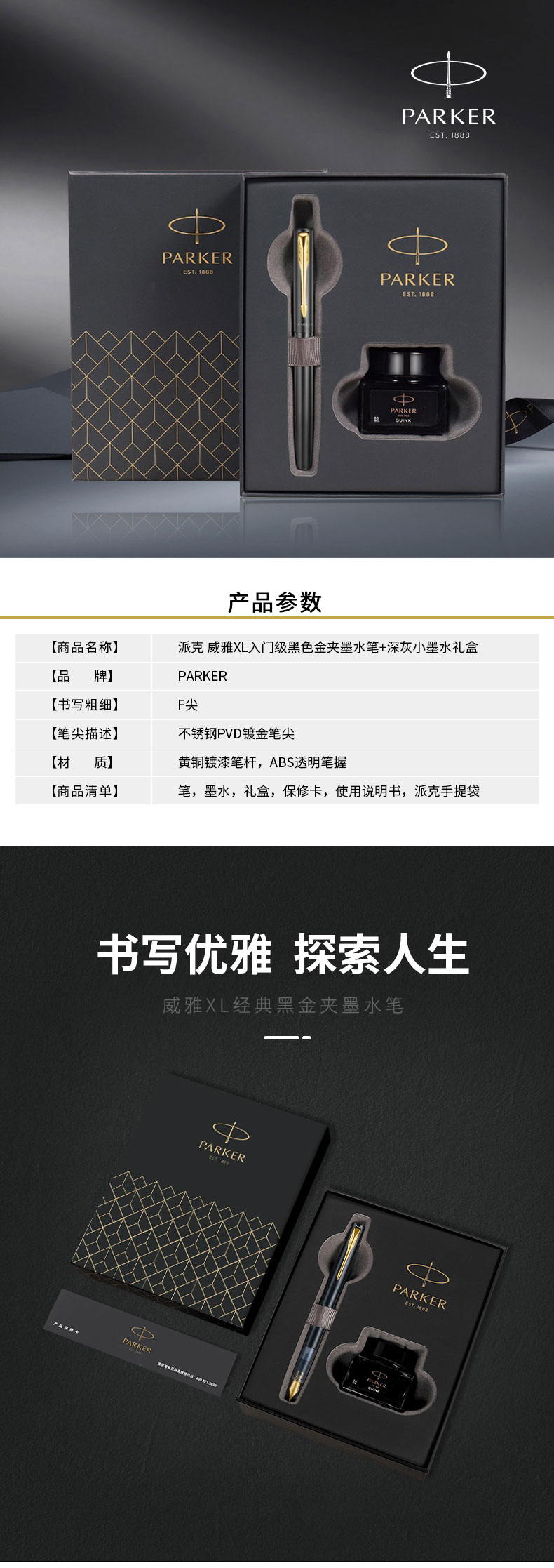 派克(PARKER)威雅XL秘境系列幻夜黑墨水笔+迷你墨水礼盒(单位:盒)