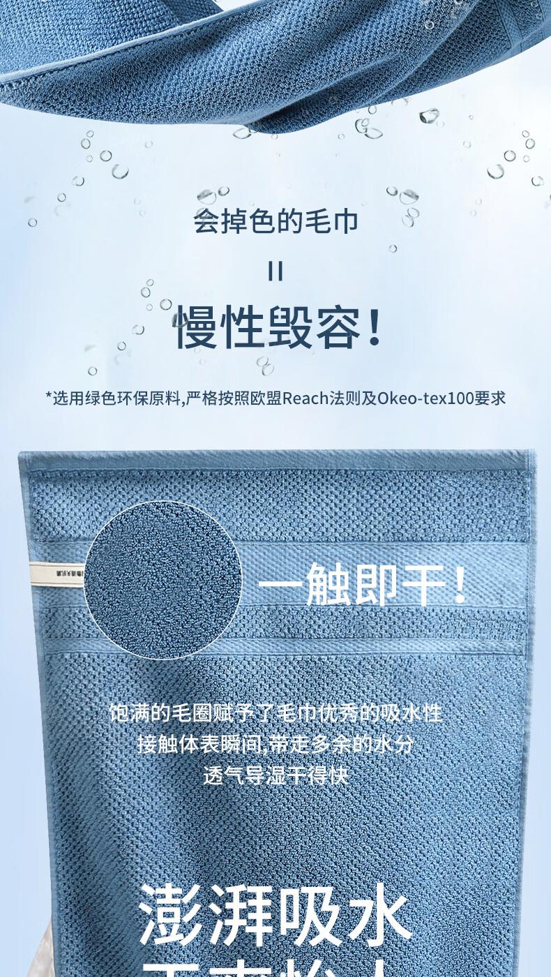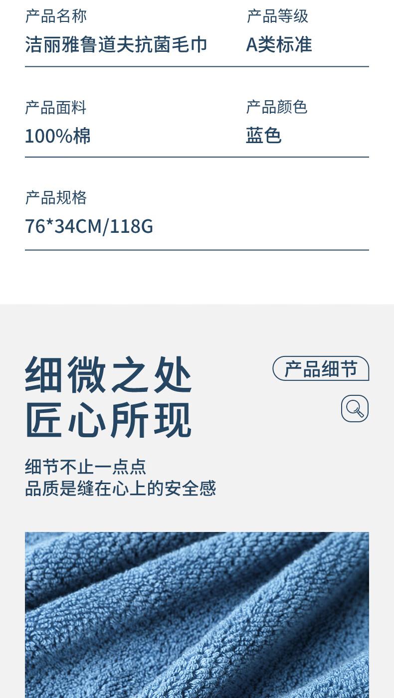 洁丽雅(Grace)W0159鲁道夫抗菌毛巾 纯棉34*76cm118g 忧郁蓝(条)