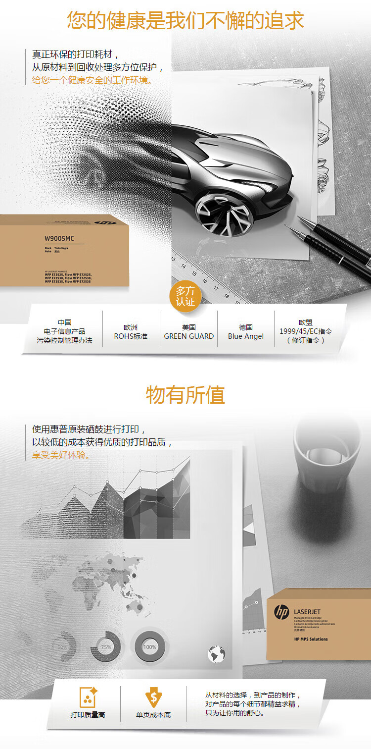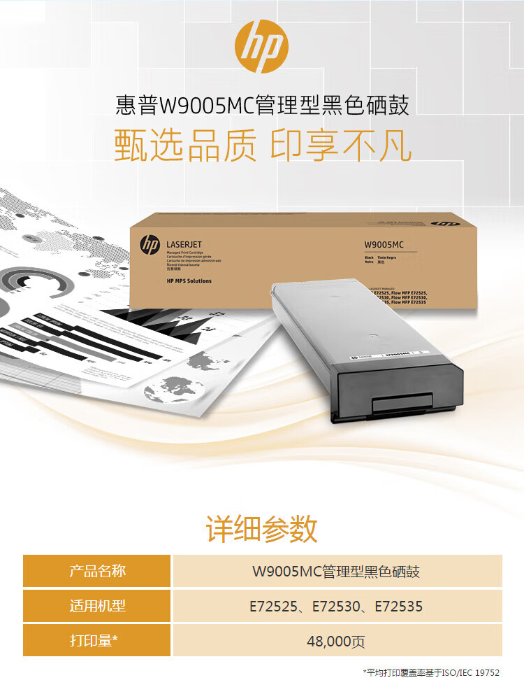 惠普(HP) W9005MC原装硒鼓(墨粉)黑色单支装(适用于:E72525/E72530/E72535)打印页数:48000(单位:支)