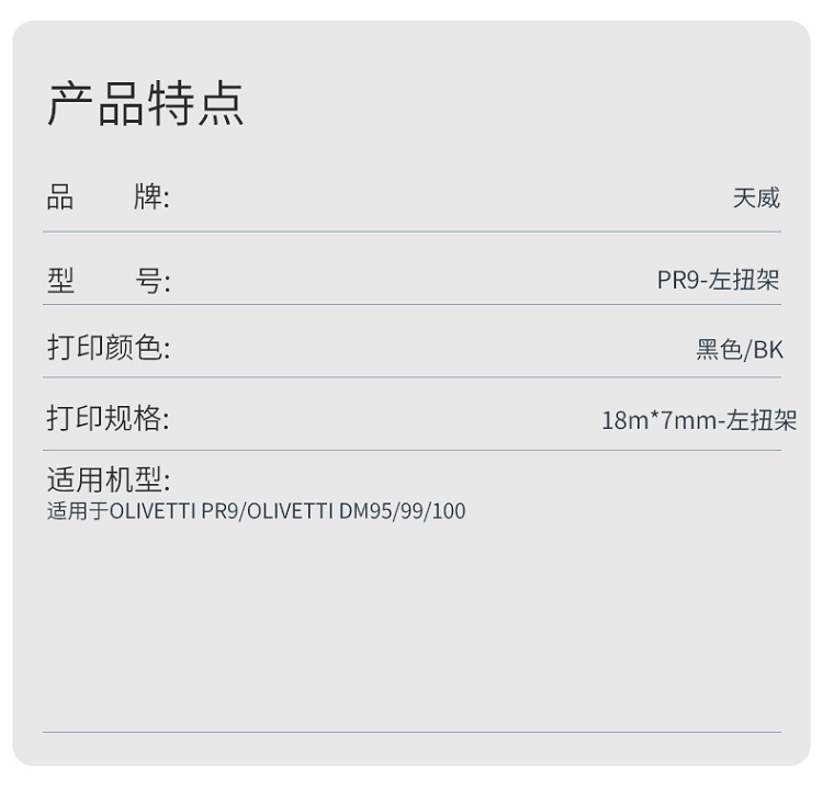 商品标题:天威 兼容OLIVETTI-PR9色带-第四代-黑左扭架 黑色(盒)