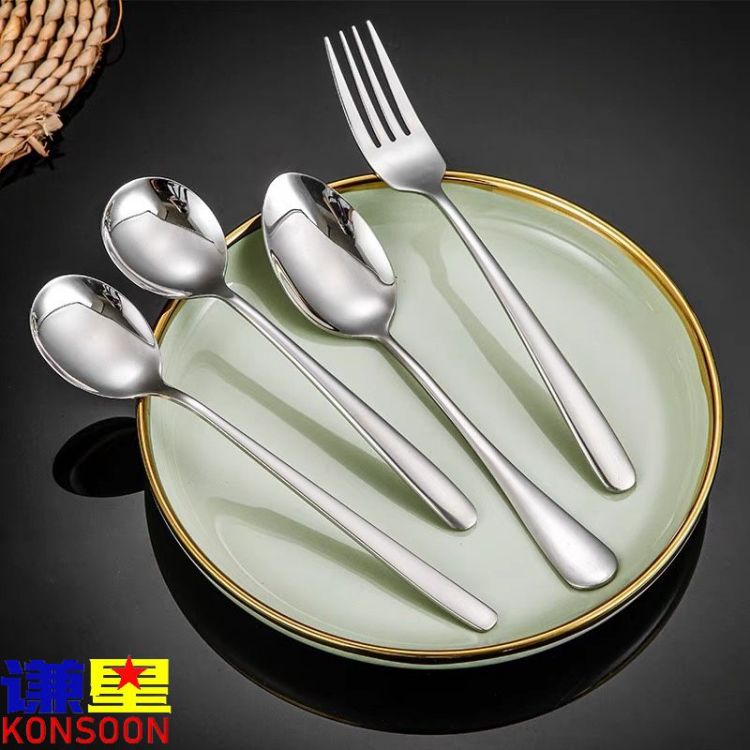 商品标题:谦星 Z-23821789 304不锈钢勺西餐勺饭勺汤勺调羹勺汤匙 304/1010一号叉 10支/组(组)