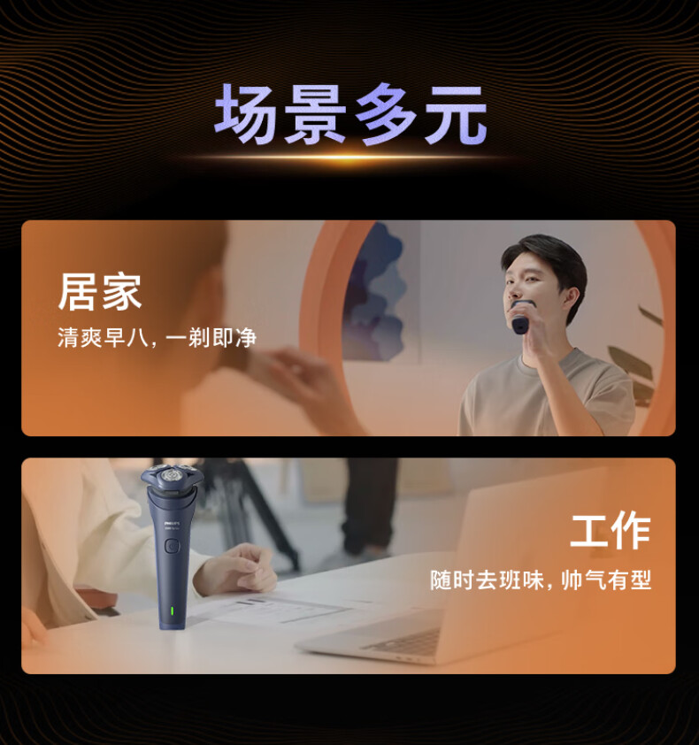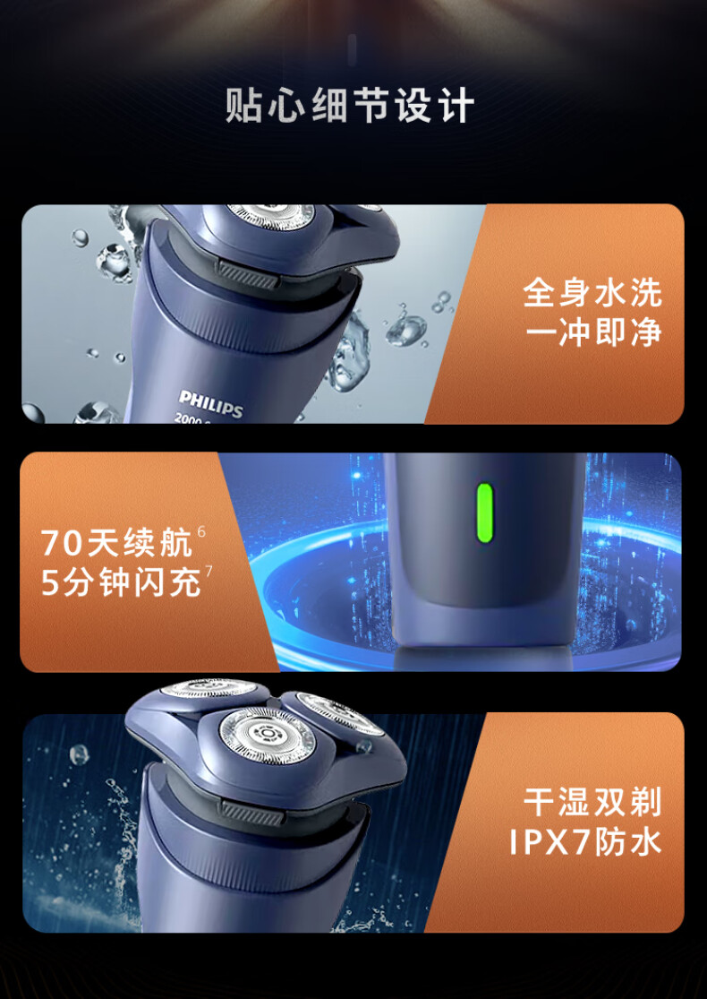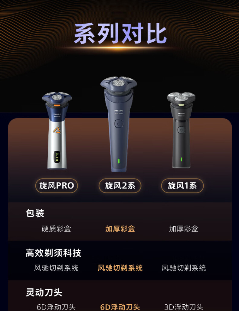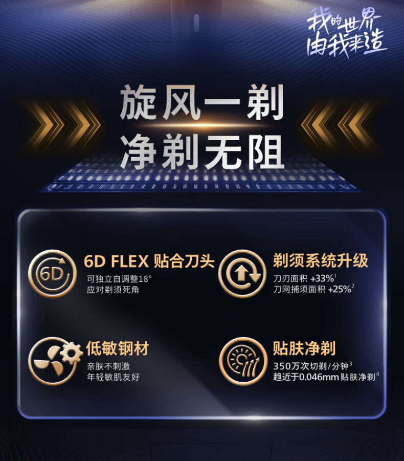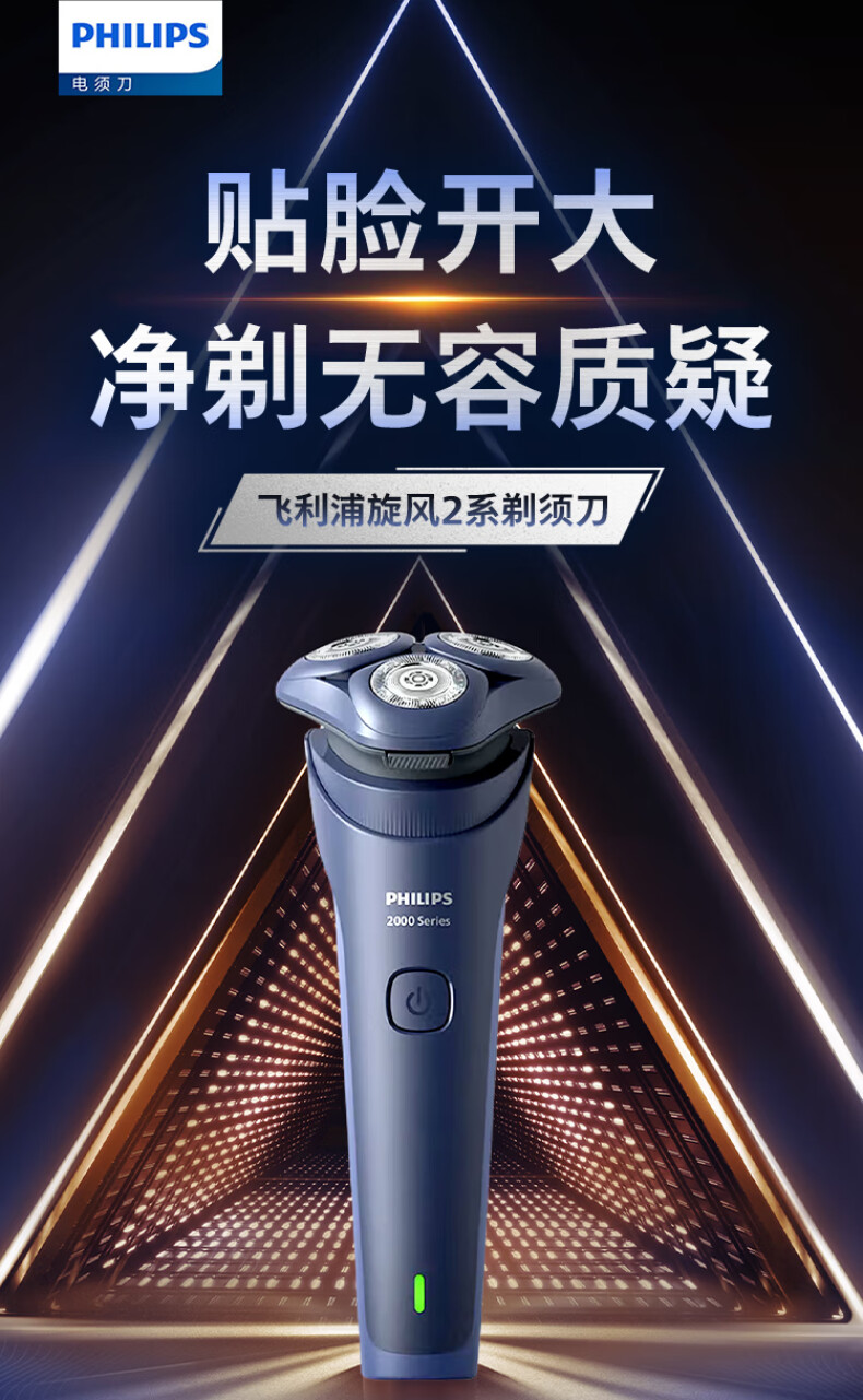 飞利浦 S2883新一代旋风2系刮胡刀亲肤净剃6D自贴合刀头剃须刀(单位:个)