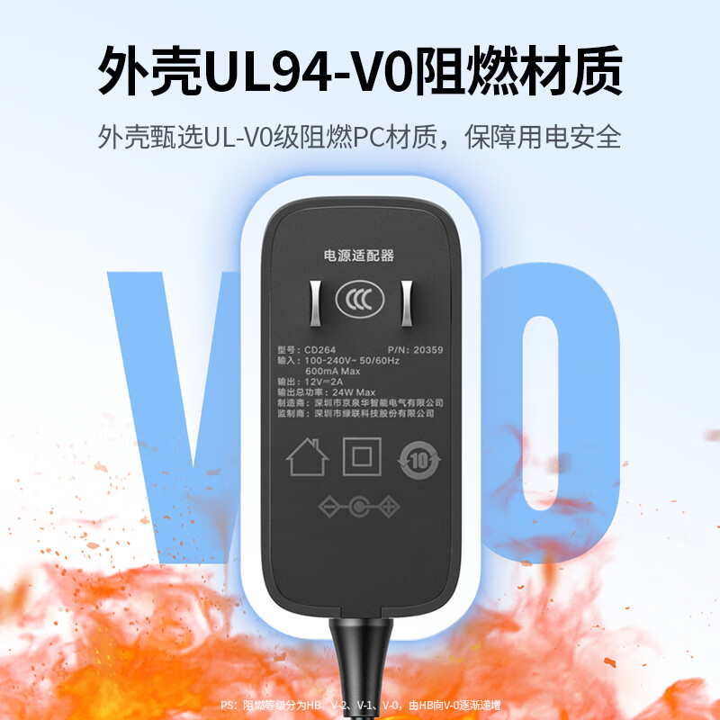 商品标题:绿联(UGREEN)CD264-20359 12V/2A 线长1.5米电源适配器 外径5.5mm内径2.1mm(计价单位:个)