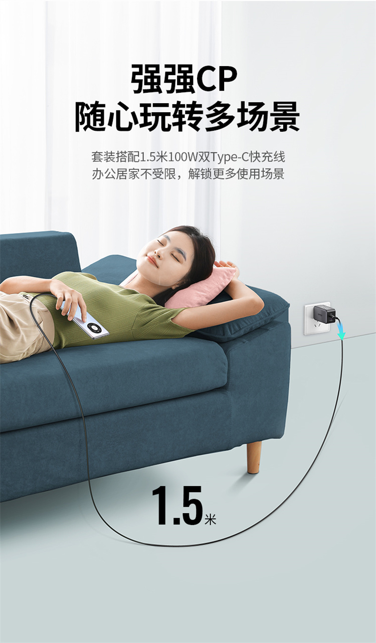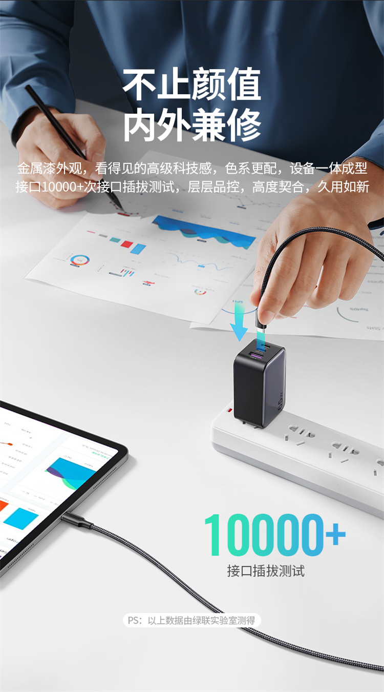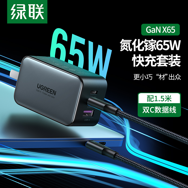 绿联50653氮化镓GaN 65W充电器+1.5m100W充电线(套)