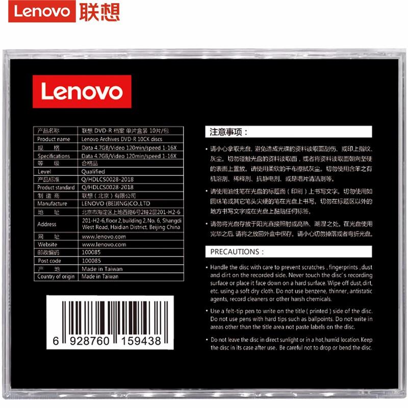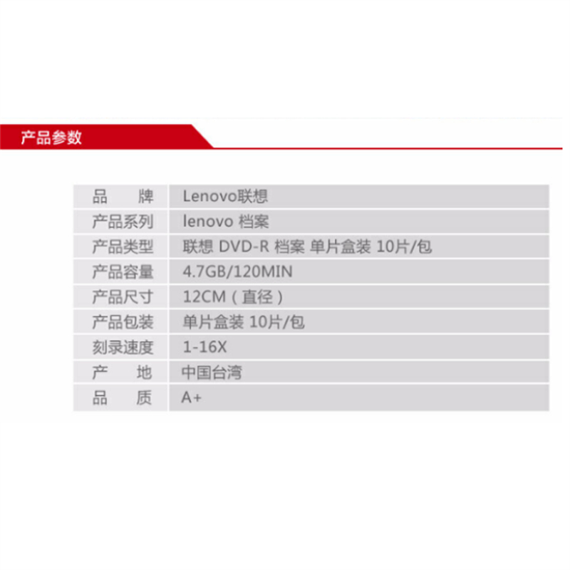 联想DVD-R/16速4.7GB台产档案系列空白光盘单片盒装10片/包(包)