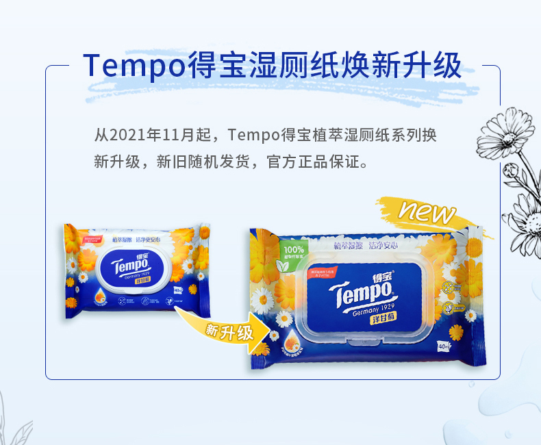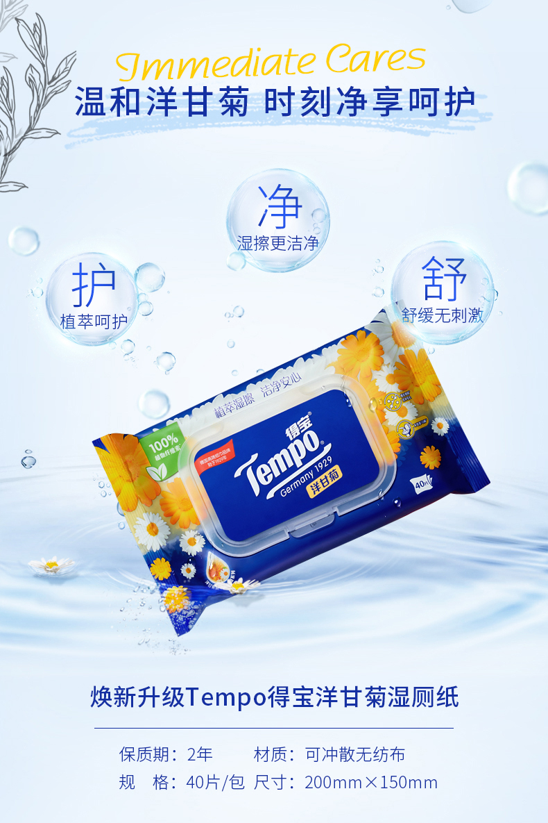 商品标题:得宝洋甘菊植萃精华湿厕纸40片/包(包)