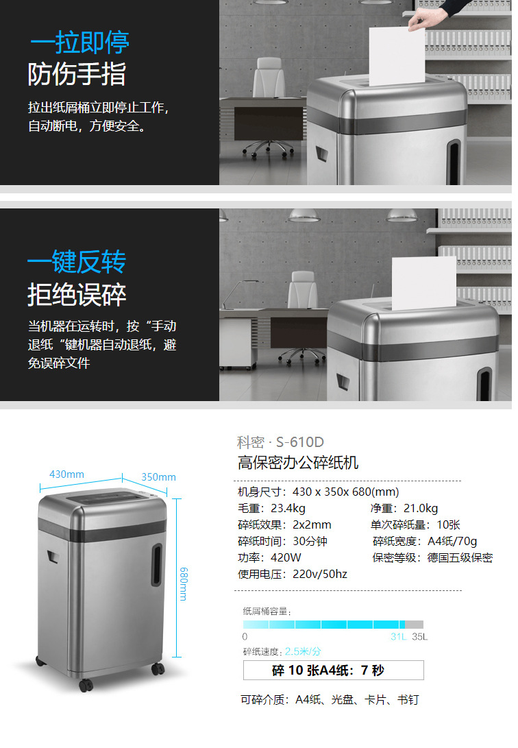 商品标题:科密(Comet) S-610D碎纸机 (台)