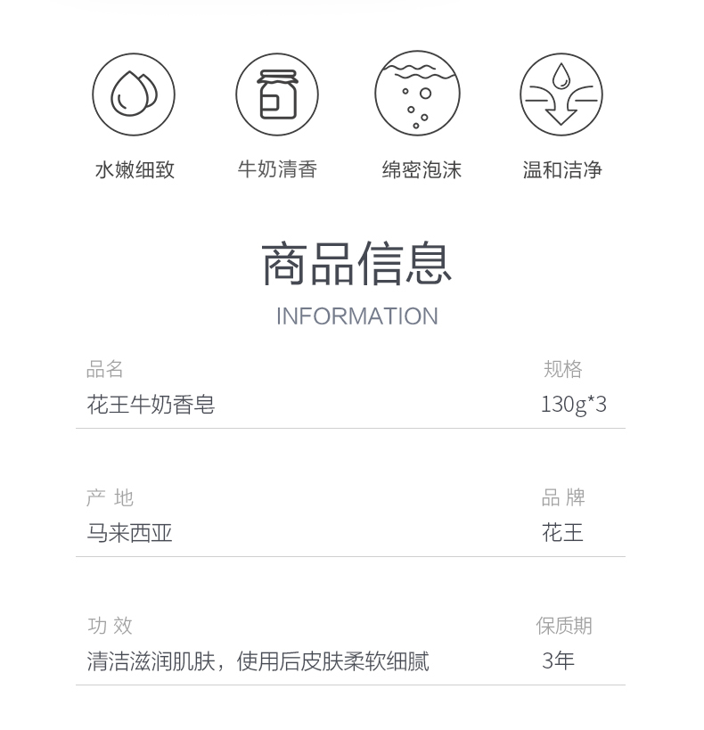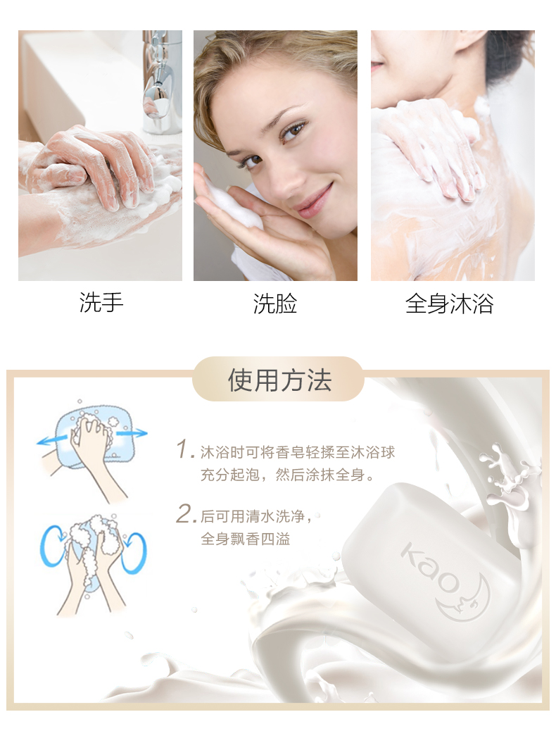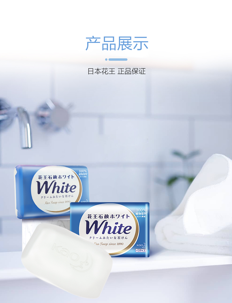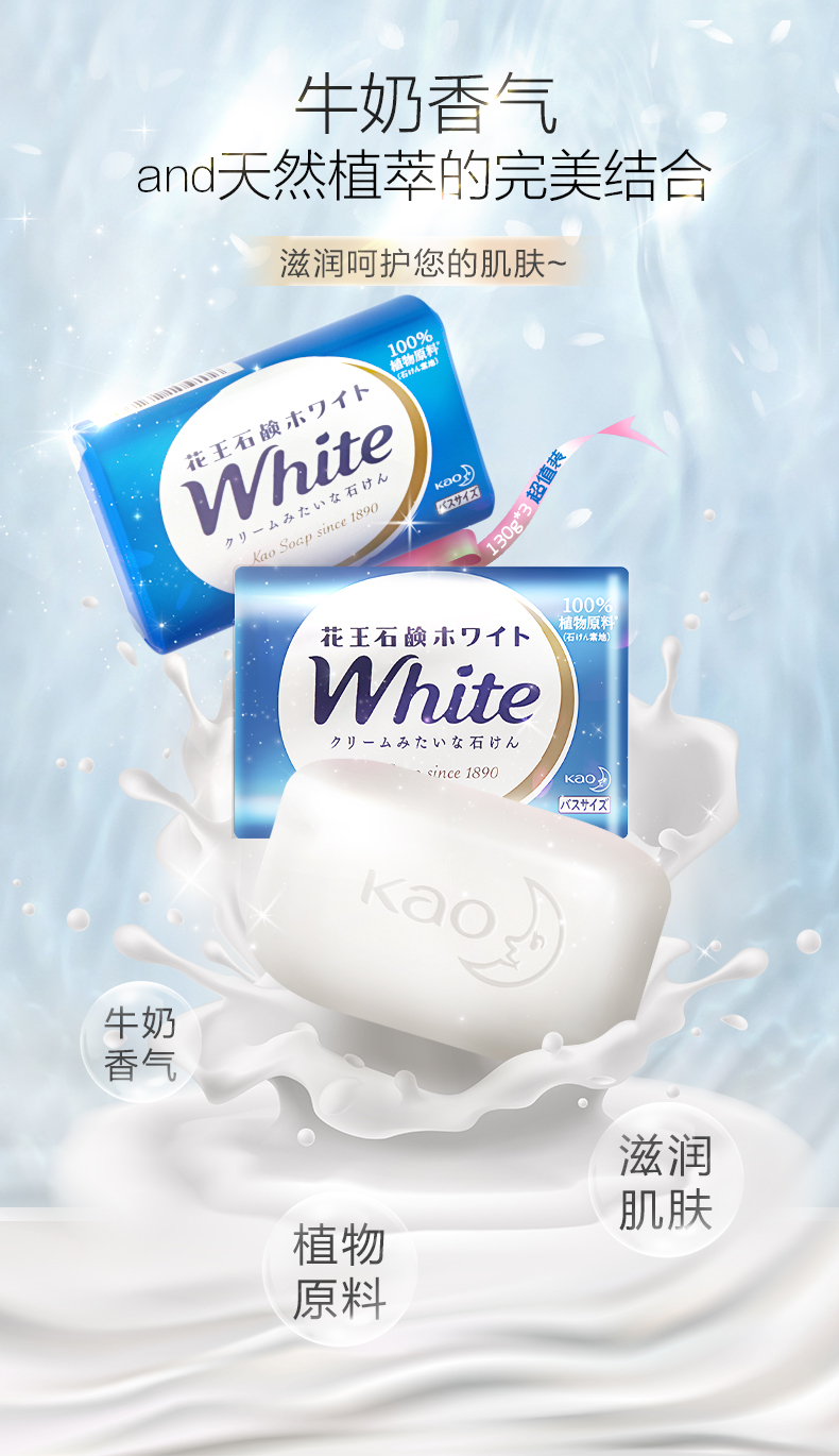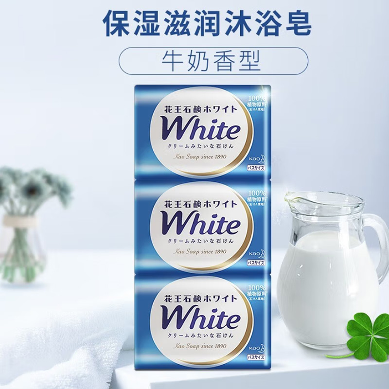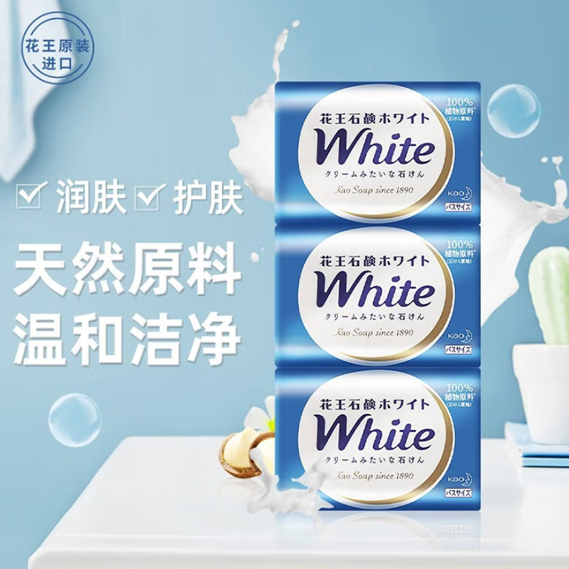 商品标题:花王进口香皂white天然奶植物沐浴香皂130g*3(组)