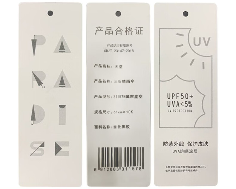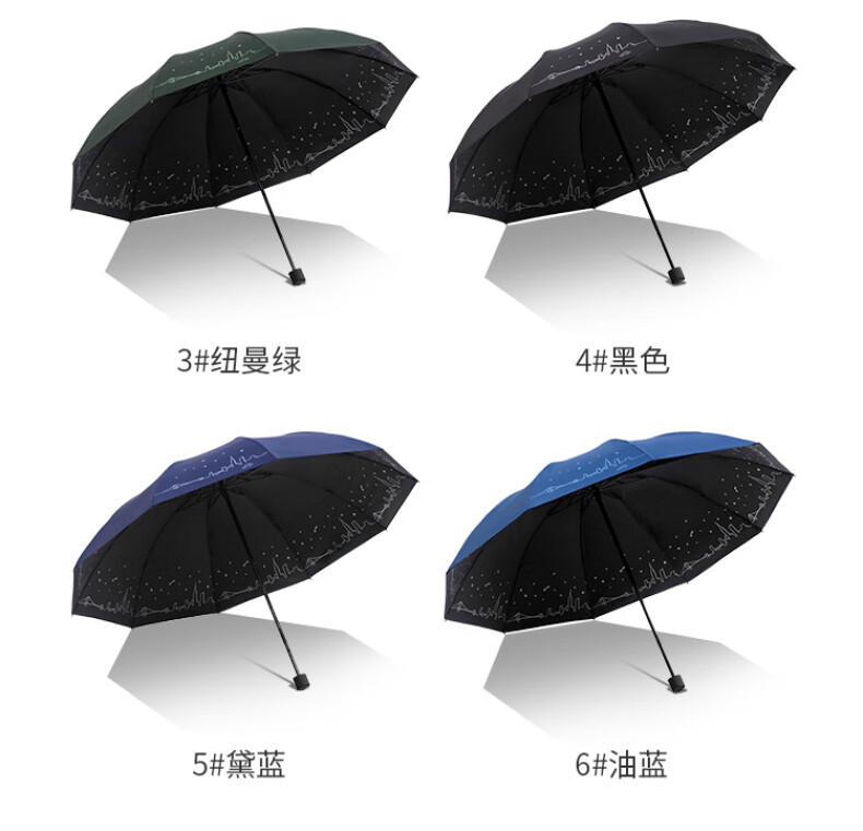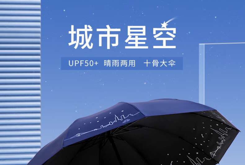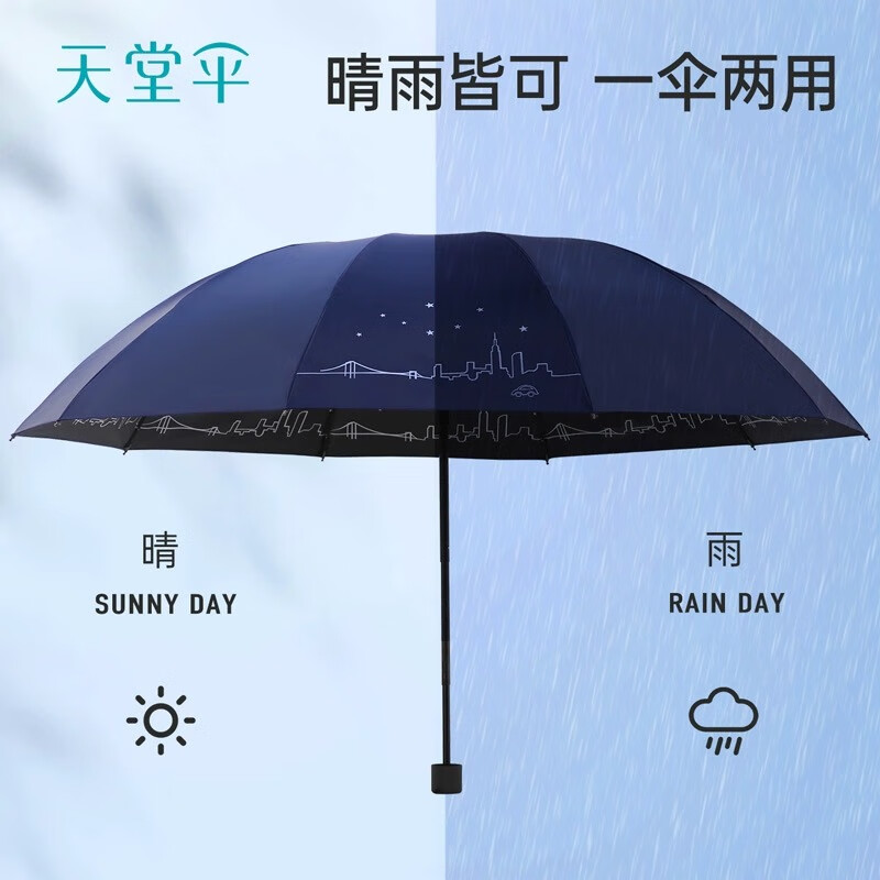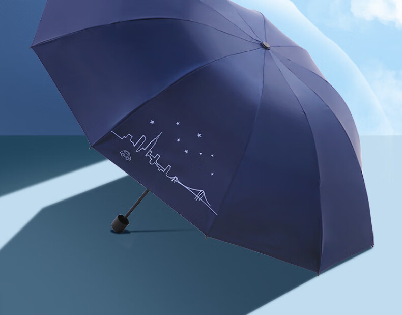 商品标题:天堂31157E城市星空三折黑胶晴雨两用雨伞 深邃蓝 61CM*10骨(把)