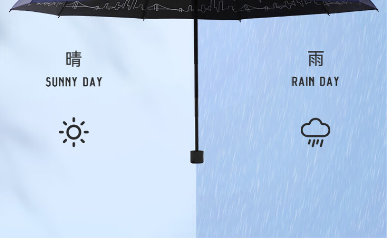 天堂31157E城市星空三折黑胶晴雨两用雨伞 深邃蓝 61CM*10骨(把)