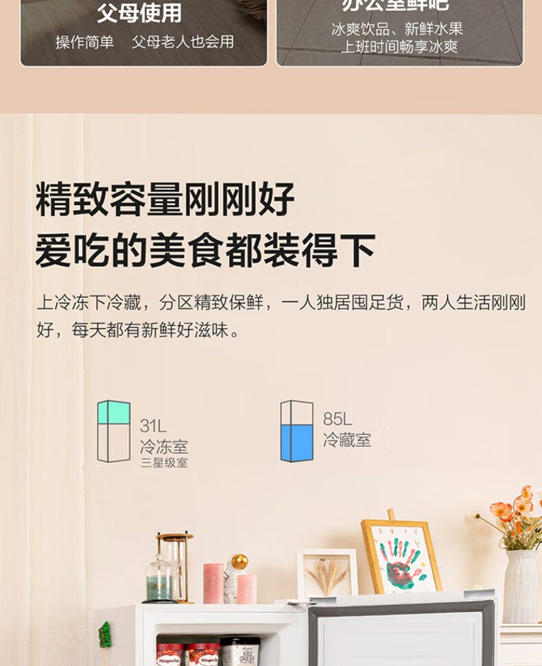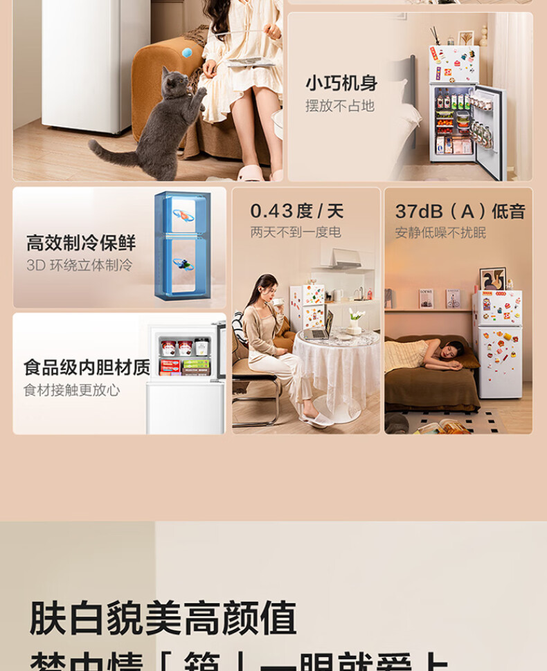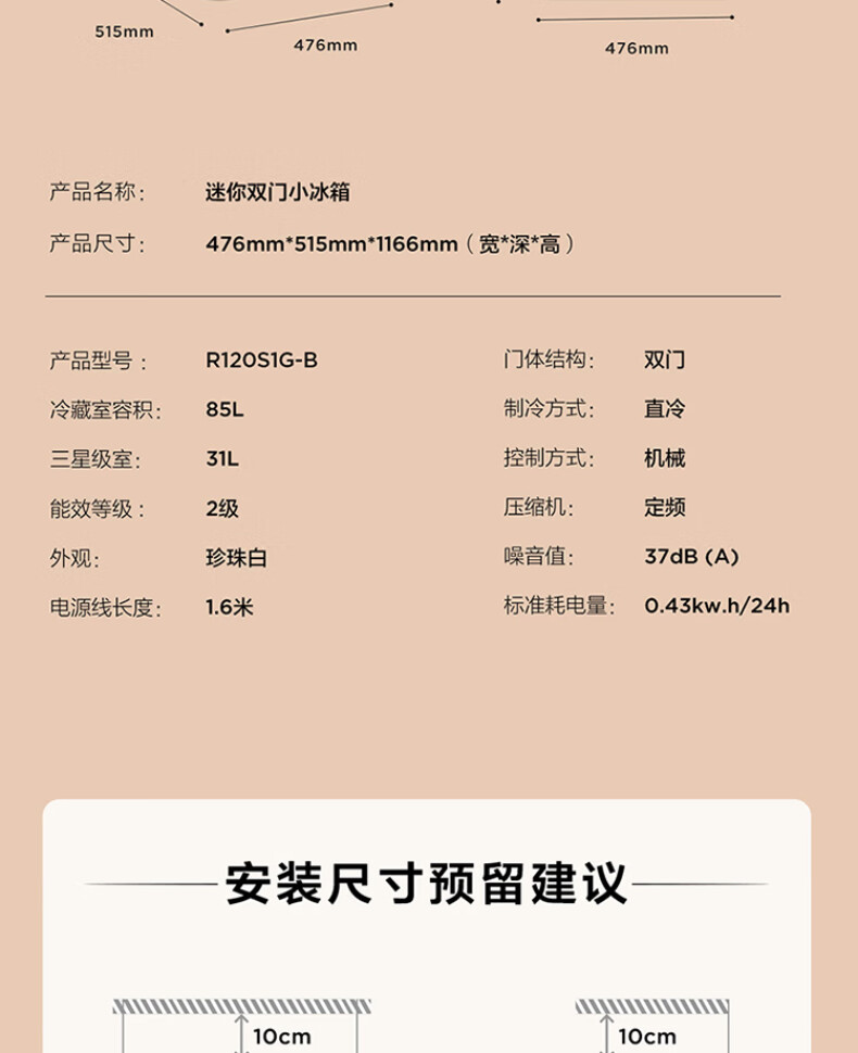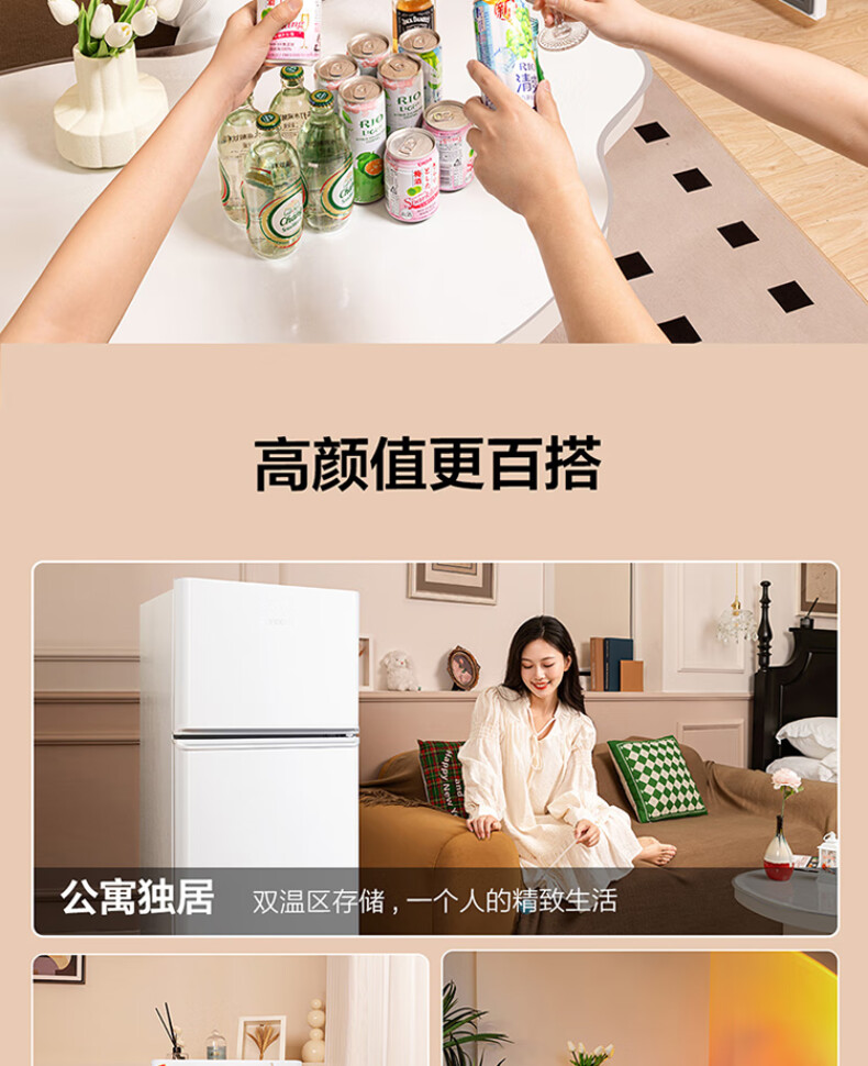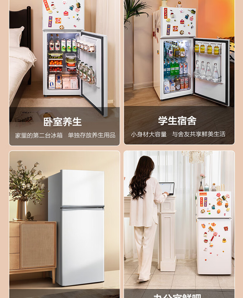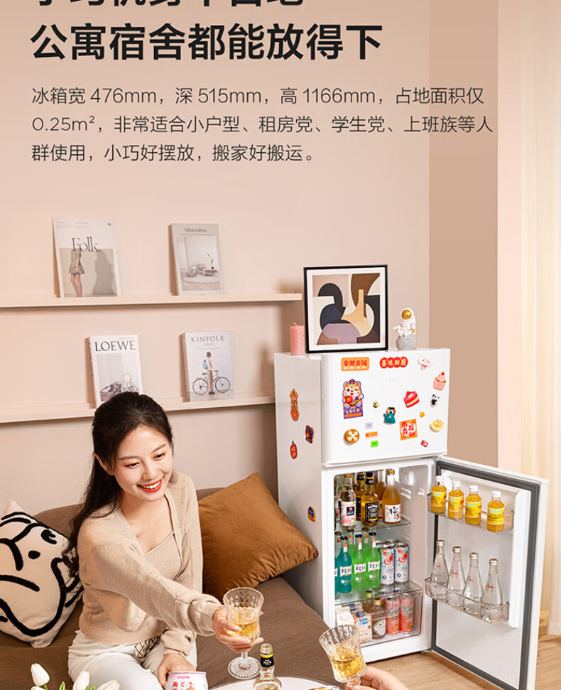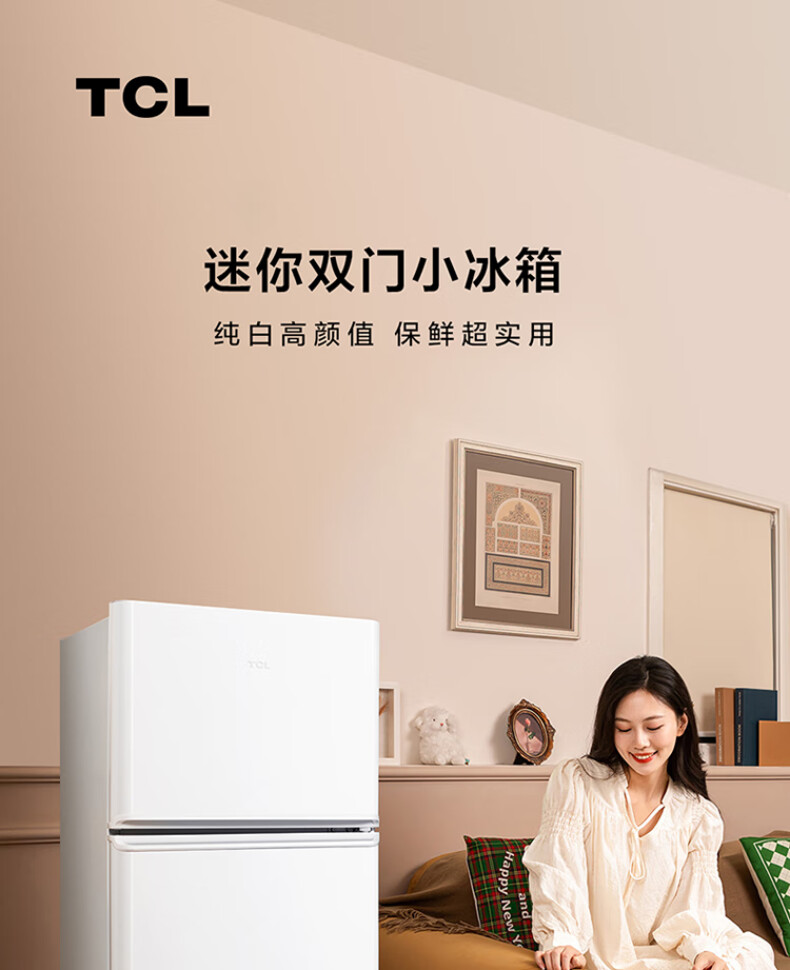 TCL 迷你双门小冰箱 节能低音 家用冰箱 R120S1G-B(台)