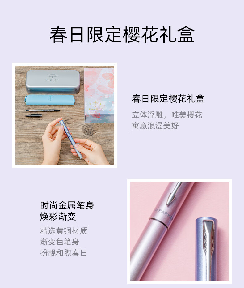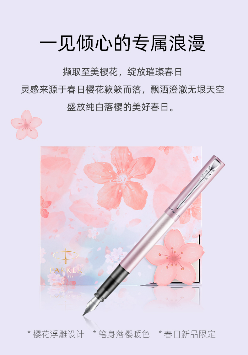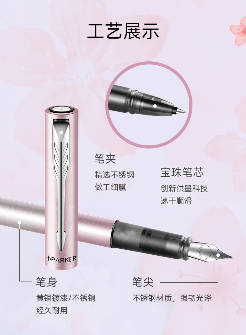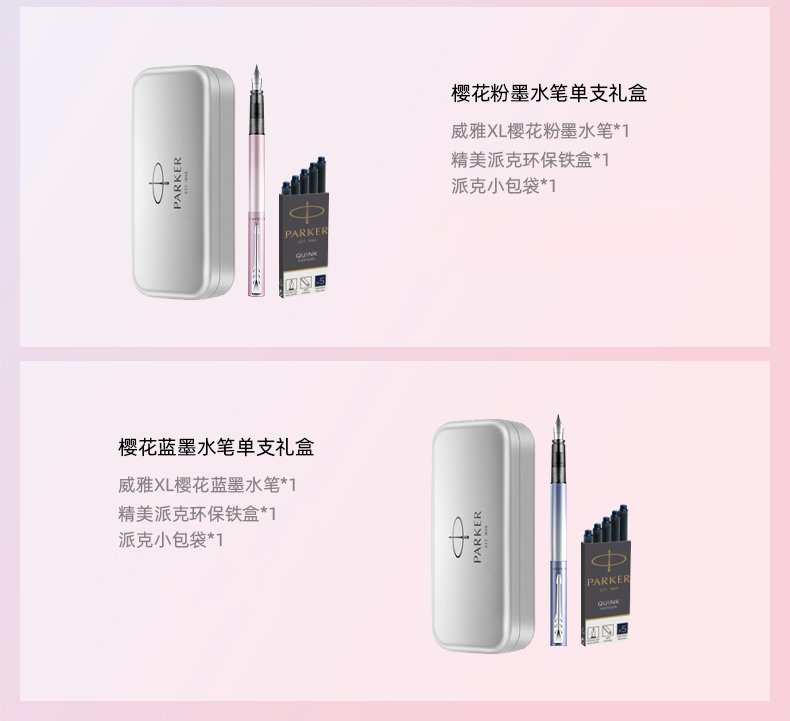 派克 (PARKER)钢笔 签字笔办公学生练字威雅XL樱花粉特别款礼盒F尖(单位:套)
