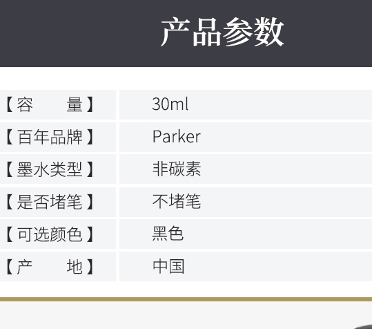 派克(PARKER)黑色 墨水 30ml(瓶)