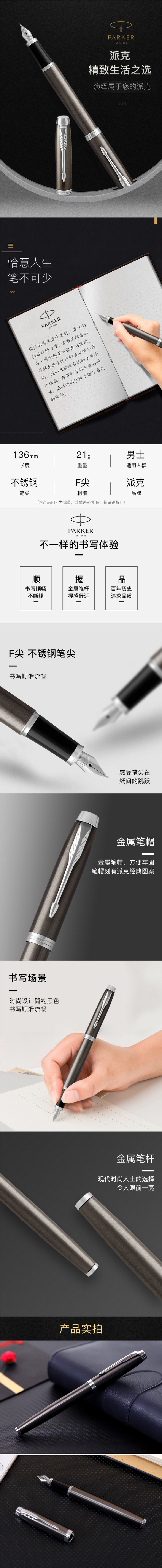 商品标题:派克PARKER16款IM金属灰白夹钢笔墨水笔(件)