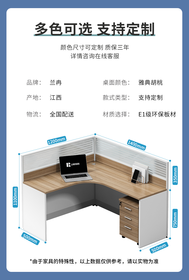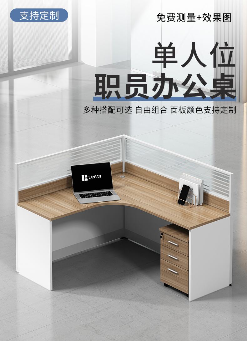 商品标题:兰冉 LR041职员办公桌卡座隔断电脑桌L型单人位1200*1400mm(张)
