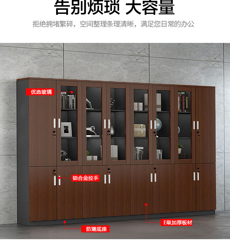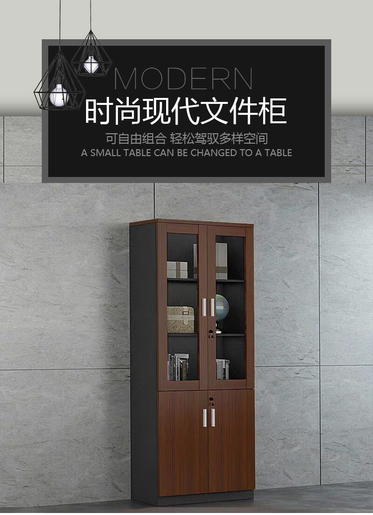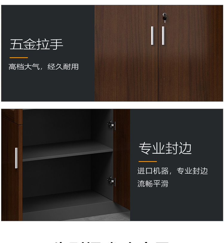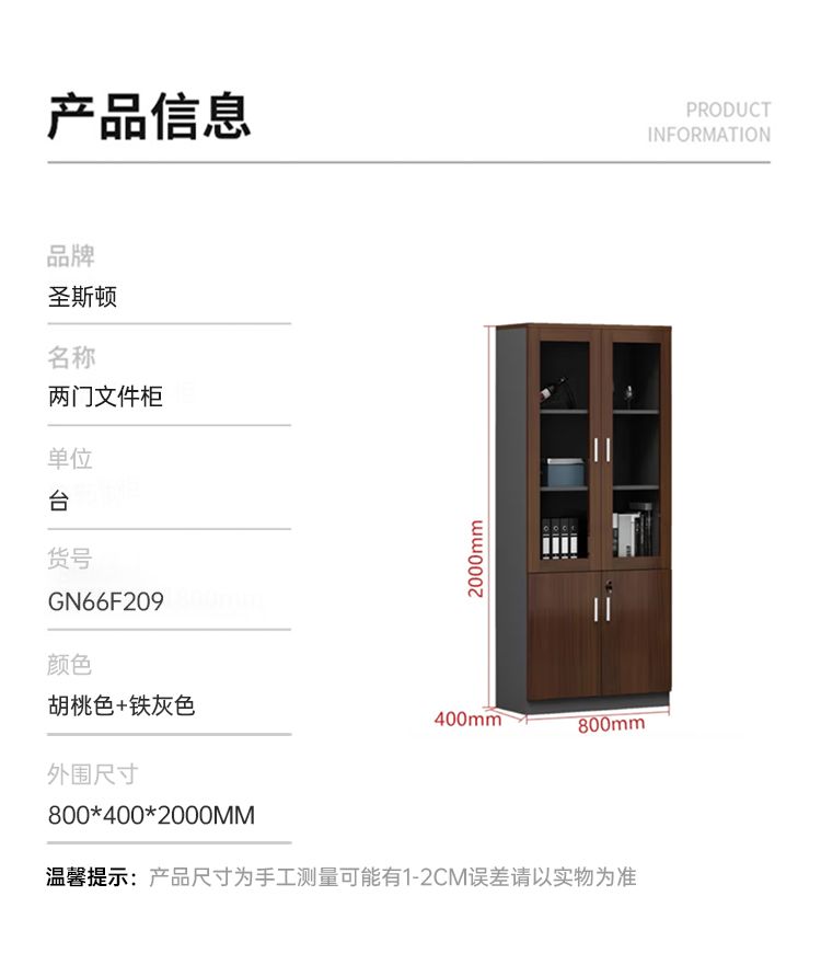 商品标题:圣斯顿GN66F209现代板式双门书柜文件柜800*400*2000mm(台)胡桃色+铁灰色