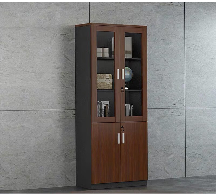 圣斯顿GN66F209现代板式双门书柜文件柜800*400*2000mm(台)胡桃色+铁灰色