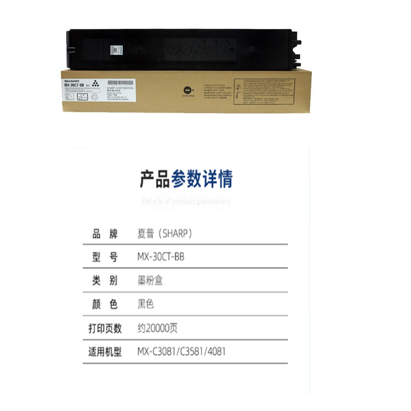 商品标题:夏普MX-30CT-BB复印机墨粉(支)(适用MX-C3081/C3581/4081机型)
