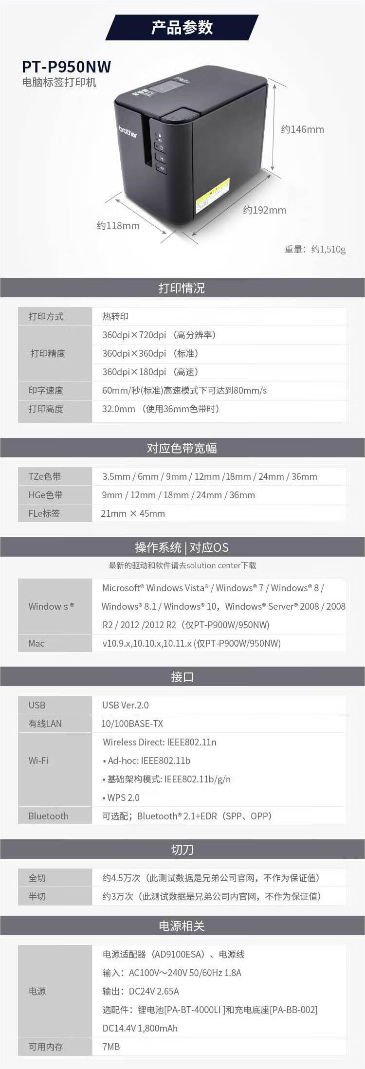 商品标题:兄弟 PT-P950NW 标签机 (单位:台)