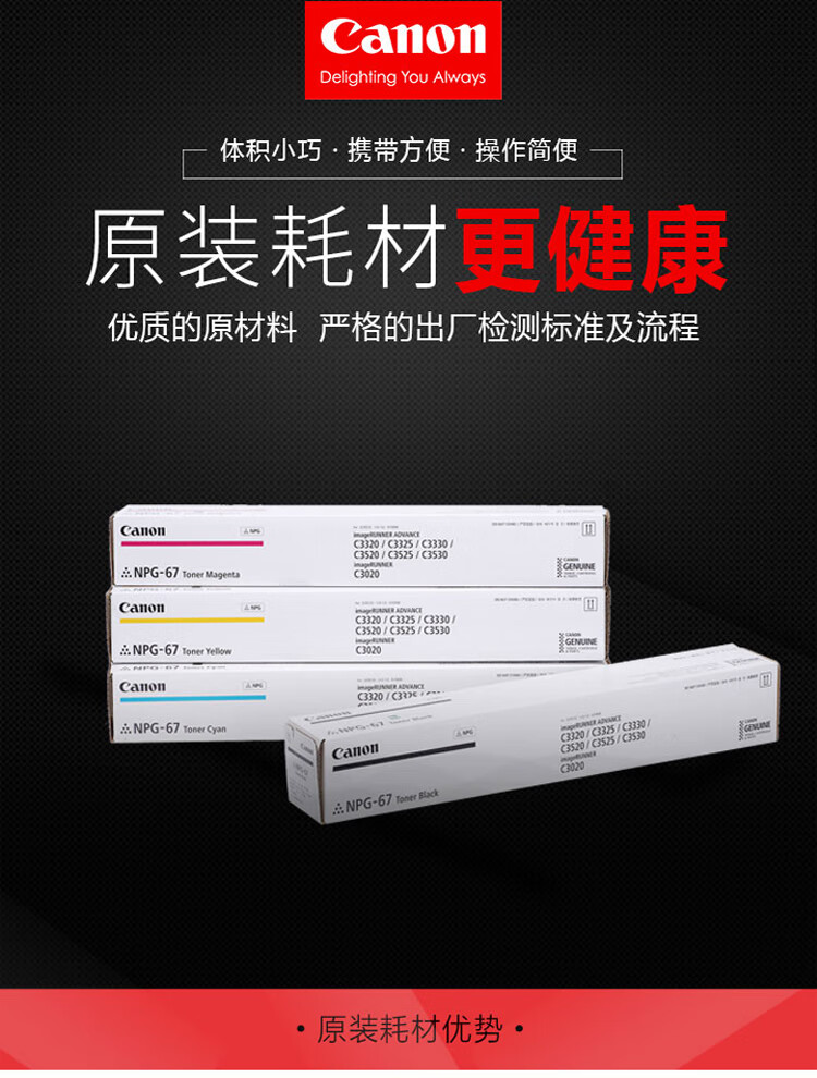 佳能NPG-67原装墨粉青色19000页(支)适用iR-ADV C3320 C3325 C3330 C3020 C3530 C3525 C3520