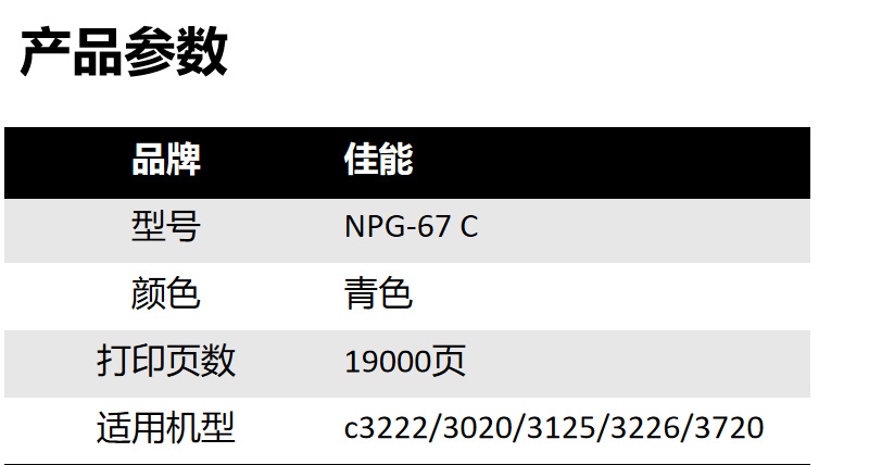 商品标题:佳能NPG-67原装墨粉青色(支)